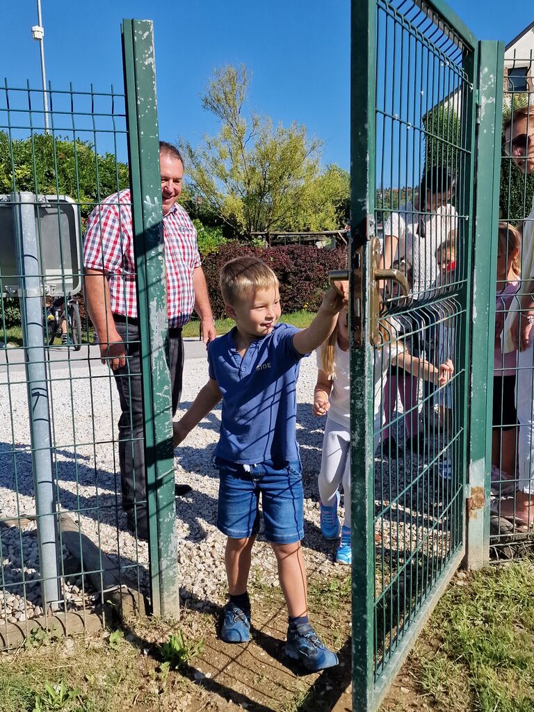 Po dveh zapetih pesmih otrok in pozdravu gospoda župana Branka Petreta so otroci prvič preizkusili igrala. Navdušenje je bilo nepopisno, mi pa verjamemo, da s tem omogočamo še več gibanja našim najmlajšim.