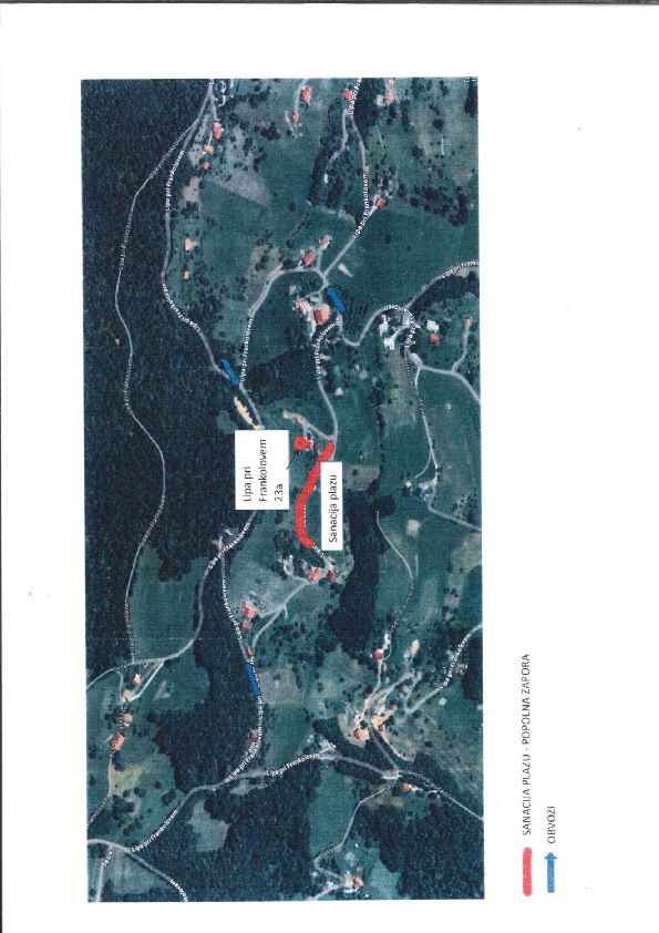Obveščamo vas, da poteka popolna zapora javne poti JP 964442 »Selce 21-22«, zaradi sanacije plazu pri hišni številki Lipa pri Frankolovem 23a, od 24. 07. 2024 do 31. 08. 2024. Obvoz v času popolne zapore je mogoč po vzporednih občinskih cestah.