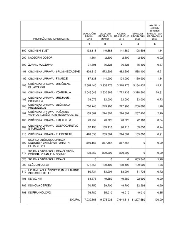 Odhodki proračuna sestavljajo finančni načrti neposrednih uporabnikov: