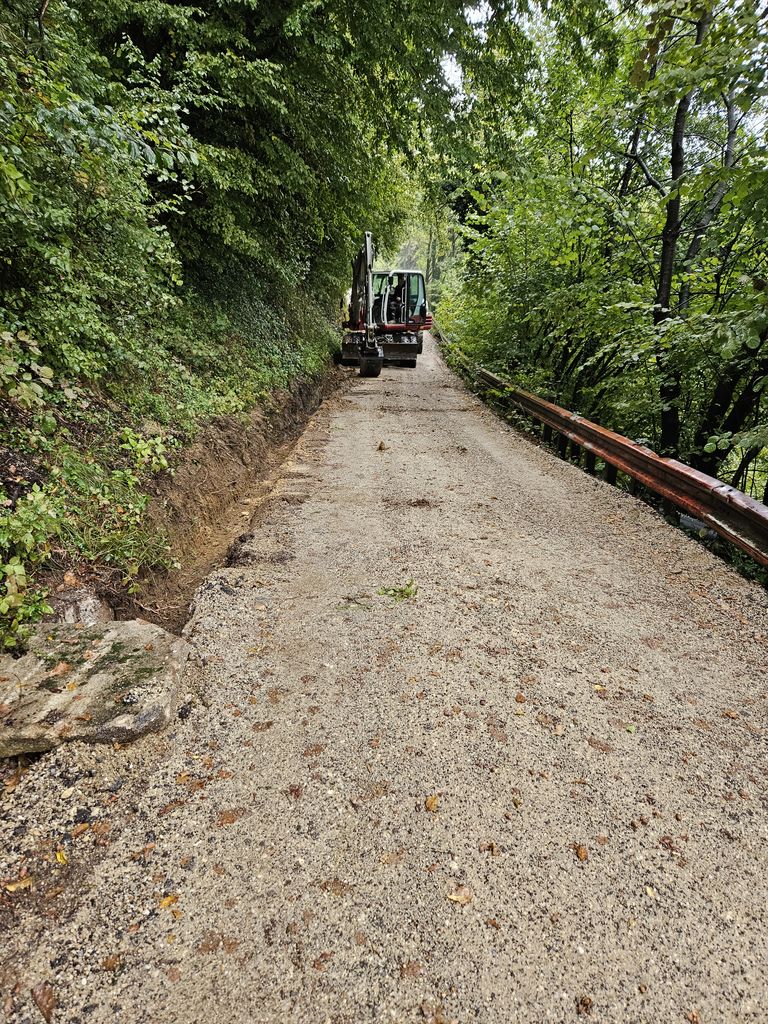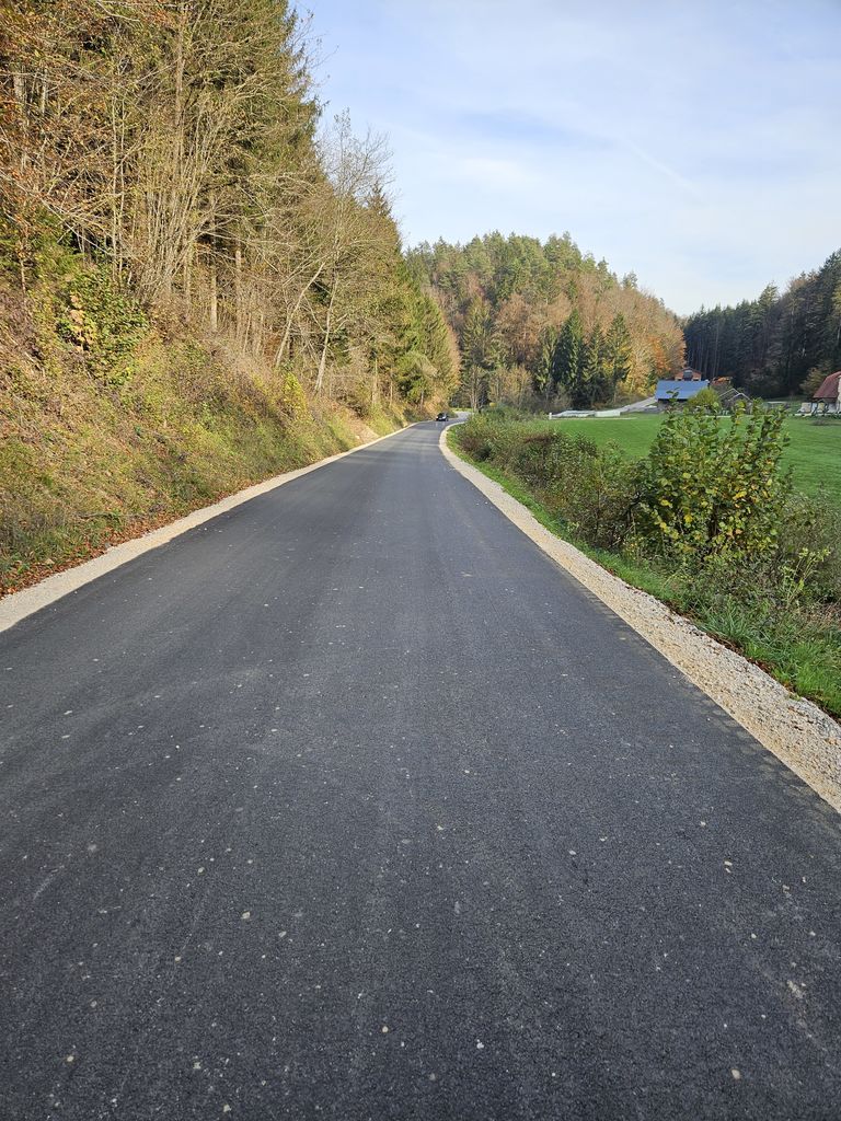 Pri rekonstrukciji smo izvedli rezkanje obstoječega asfalta, ki smo ga kasneje uporabili kot tamponski material, izvedli plitvo rigolo-drenažo, ki bo zagotovila učinkovito odvajanje padavinskih voda, s čimer bomo ohranili stabilnost cestišča v različnih vremenskih razmerah. Poleg tega smo v okviru projekta izvedli tudi izgradnjo novih požiralnikov, kar bo prispevalo k boljšemu odvodnjavanju meteornih vod. S tem ukrepom bomo zagotovili večjo varnost v prometu, zlasti v obdobjih močnih padavin in zimskih razmer. Dograjevanje muld in razširitev ceste, kjer je bilo to mogoče, bosta prispevala k izboljšanju preglednosti ceste ter omogočila boljšo pretočnost prometa. Razširitev ceste bo tudi olajšala srečevanje vozil in prispevala k večji varnosti na cesti. V okviru rekonstrukcije smo izvedli še celovito sanacijo ustroja ceste, kar bo podaljšalo življenjsko dobo ceste in zmanjšalo potrebo po rednih popravilih. Poleg tega smo izvedli odstranitev obstoječe betonske koritnice, ki jo bomo nadomestili z asfaltno muldo.