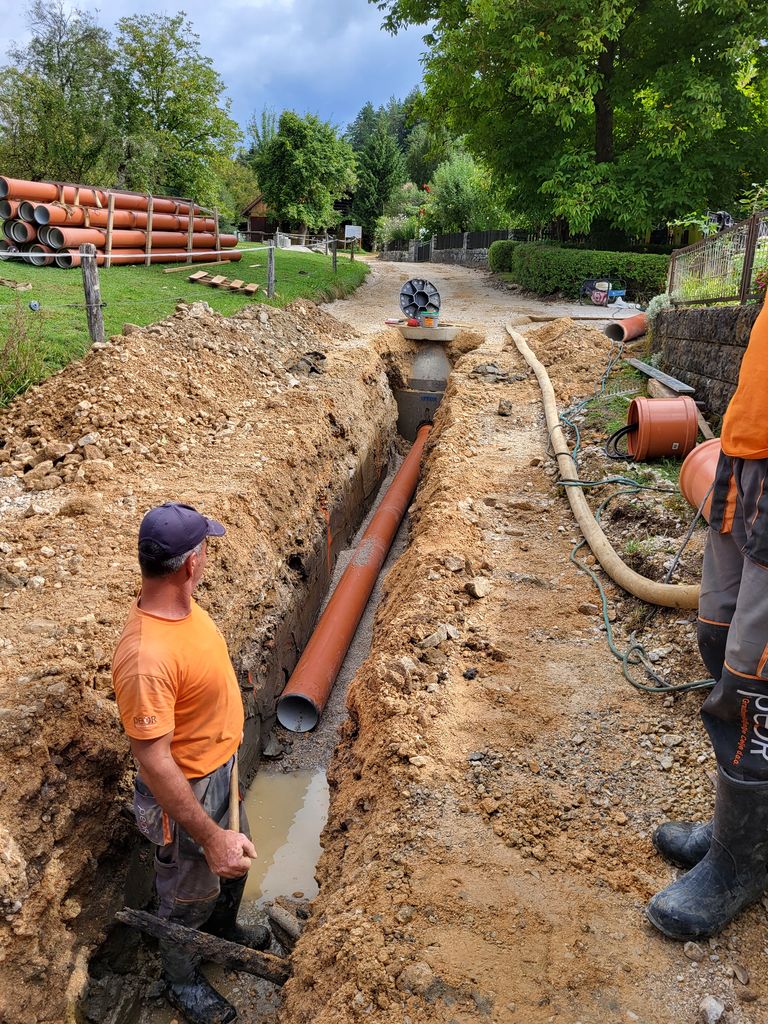 Začeli smo izgradnjo fekalne kanalizacije v dolžini 780 m v naselju Razdelj. Celotni kanal se gravitacijsko priključuje na že zgrajen kanal v Polžah čez Novo Cerkev v ČN Višnja vas. Na omenjeno kanalizacijsko omrežje v Razdelju se bo lahko priključilo 16 obstoječih objektov, pa tudi objekti, ki bodo še zgrajeni. Ob izgradnji kanalizacijskega omrežja bomo obnovili celotno asfaltno cesto, po kateri je trasa fekalne kanalizacije večinoma speljana. Ob izgradnji fekalne kanalizacije bomo uredili odvodnjavanje ceste, dogradili javno razsvetljavo, obnovili javni vodovod (v delu, kjer je potrebno) ter položili zaščitne cevi za telekomunikacijskega operaterja.