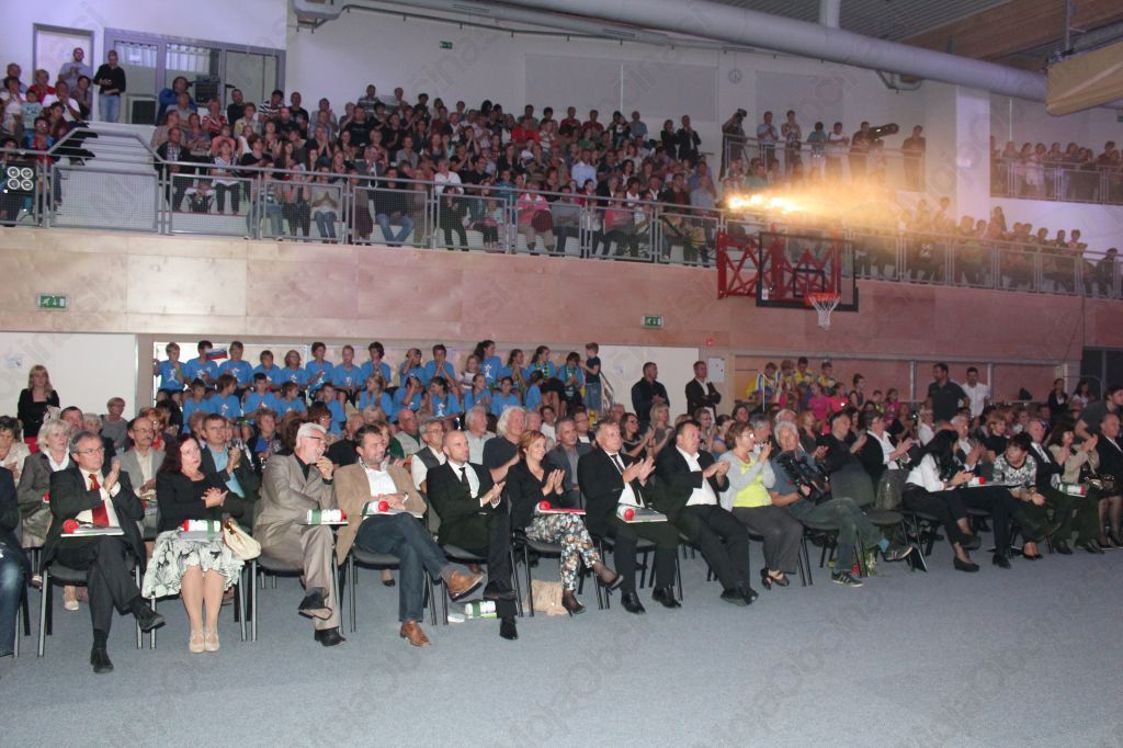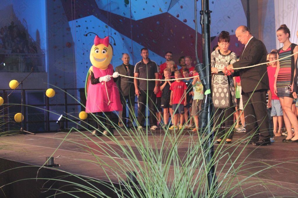 Program je spremljala odlična igra svetlobe in barv, za katero je poskrbel Primož Kogovšek, za mešalno mizo ozvočenja je sedel Jure Uranič, goste so sprejemale hostese, učenke devetošolke pod vodstvom Simone Šarlah. Najbolj slovesen pa je bil zaključek, ko so ob pomoči šolskih maskot Vojča in Vojčke prerezali vrv kot simbolni znak odprtja telovadnice. Po simbolne škarje je morala v plezalno steno ob pomoči župana Vesna Poteko, vrv sta prerezala župan Benedikt Podergajs in ravnateljica Majda Rojc ob sodelovanju najmlajšega učenca Roka Armiča, devetošolke Tinkare Žnidar in upokojene učiteljice Francke Tanc. Odprtje je bilo zanimivo in čudovito ob svetleči pirotehniki.