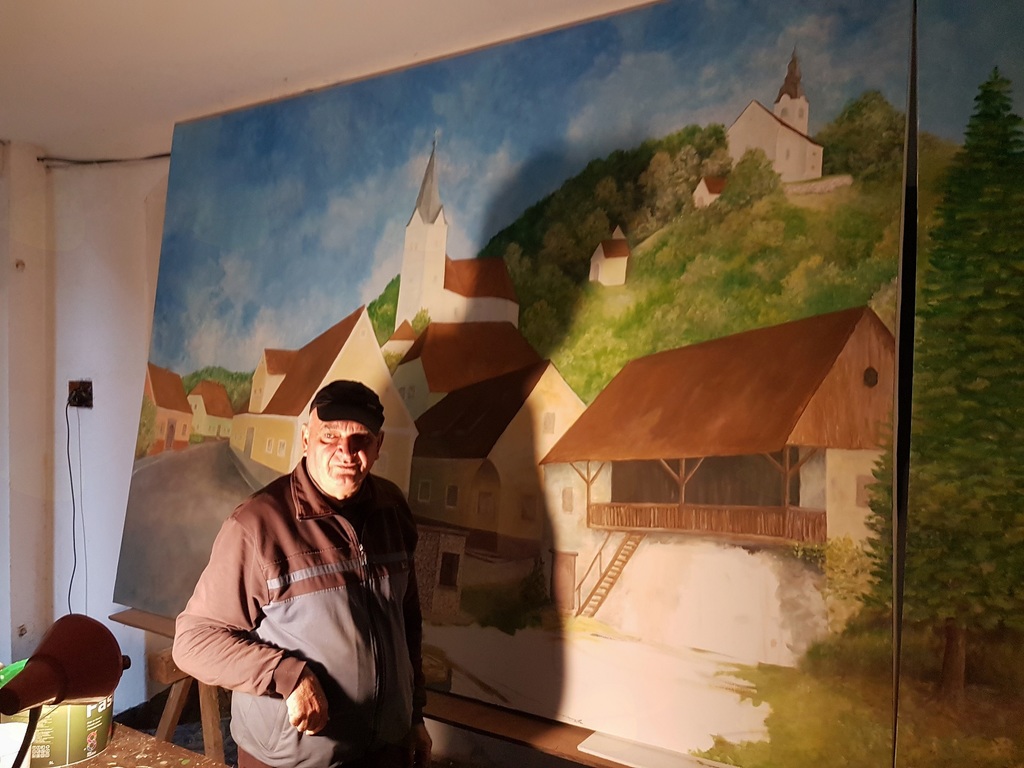 V Vojniku si močno prizadevamo, da bi našli nove načine ustvarjanja jaslic. Spomnili smo se na domačega ljubiteljskega umetnika Darka Klančnika in prišli na zanimivo idejo, da jaslice nariše na platno z ozadjem glavne vedute Vojnika.