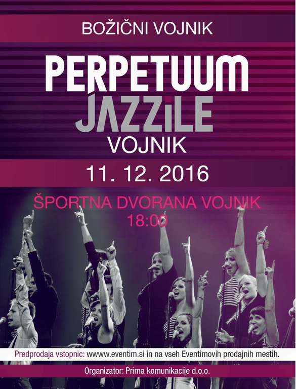 V okviru Božičnega Vojnika vas vabimo na koncert skupine Perpetuum Jazzile, ki bo v nedeljo, 11. decembra 2016, ob 18. uri v Športni dvorani Vojnik.
