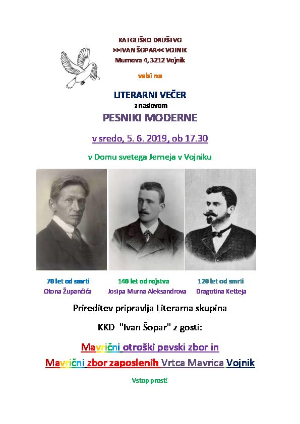 vabi na LITERARNI VEČER z naslovom PESNIKI MODERNE