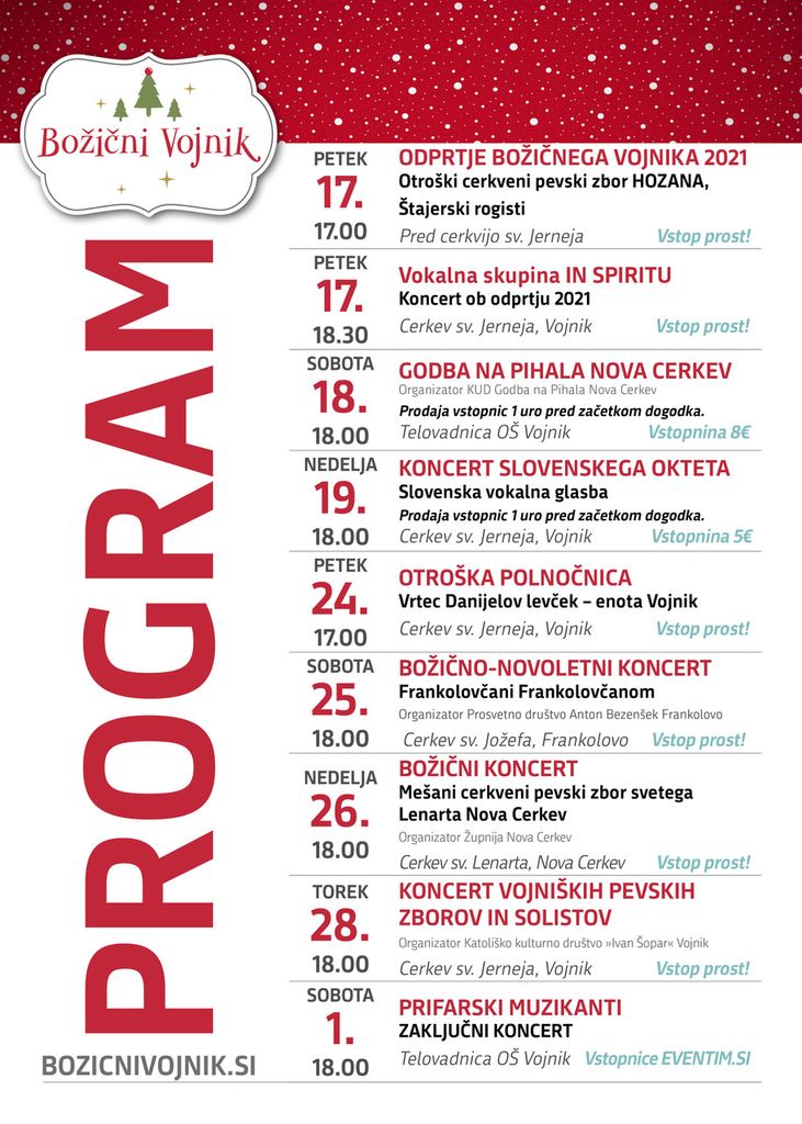 Zaključni koncert Božičnega Vojnika: v soboto, 01. januarja 2022 ob 18. uri v telovadnici OŠ Vojnik.