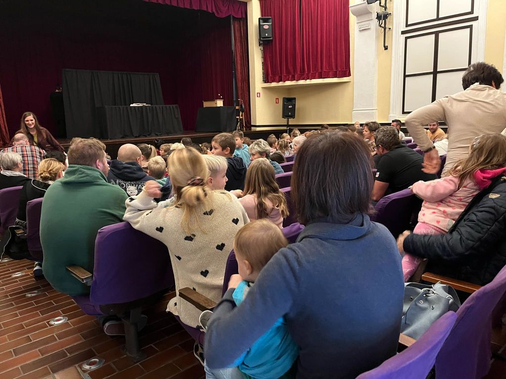V Kulturnem domu Vojnik je množica navdušenih otrok in staršev uživala ob ogledu lutkovne predstave "Tri peresa", ki jo je izvedlo Društvo Škratovo lutkovno gledališče Celje. Prireditev je pritegnila veliko pozornosti, saj je bil kulturni dom skoraj v celoti napolnjen.