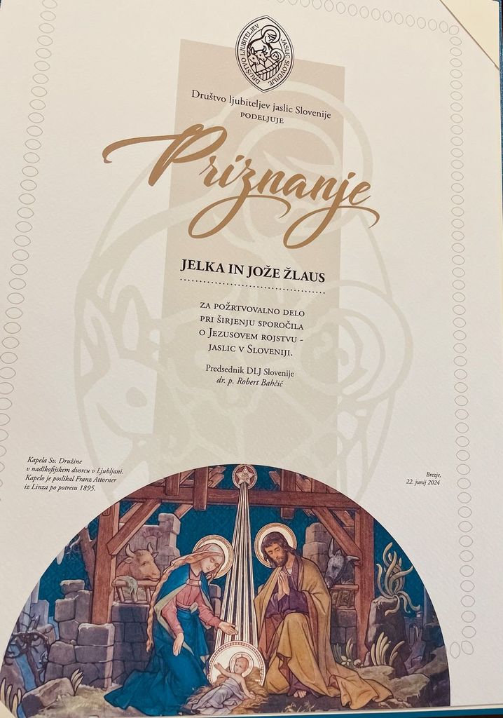 priznanje za aktivno delo na področju jasličarstva. Podelil jima ga je predsednik