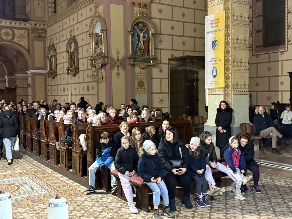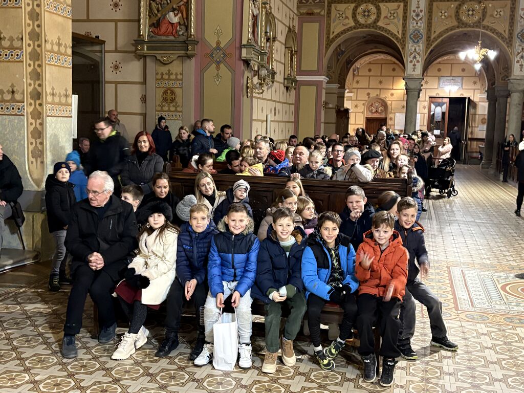 Kasneje je Miklavž obiskal 180 otrok v cerkvi sv. Jerneja. Najprej je otroke pozdravil domači župnik, ki je bil vesel, da se je v cerkvi zbralo toliko otrok, in izrazil željo, da bi večkrat prišli v cerkev, saj se približuje čudovit praznik, ko bo za otroke otroška polnočnica. Miklavž je z veseljem s pomočjo angelov razdelil darila. Za obdaritev so ob finančni pomoči staršev poskrbeli člani Karitas, ki so malo pomladili svoje vrste. Darila, za pripravo katerih imata velike zasluge predsednica Darinka Preložnik in Polonca Preložnik, so zelo praktična in uporabna, ki bodo otroke spremljala v prazničnem času in še kasneje. V mnogih domovih bo raslo božično žito, spoznavali bodo slovenske praznike, brali in igrali ter se sladkali. Na Miklavžev obisk s spremljevalci bodo ostali lepi spomini.