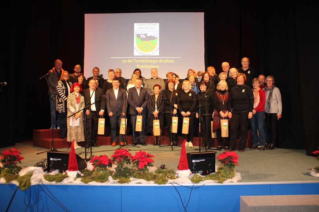 Turistično društvo (TD) Frankolovo je bilo ustanovljeno leta 1955. Sedem desetletij svojega delovanja je sklenilo s slovesnim praznovanjem ob koncu preteklega novembra. Jubilejni večer je bil prežet s ponosom, hvaležnostjo in spoštovanjem do vseh, ki so skozi desetletja soustvarjali zgodbo kraja. Kulturni program so oblikovali domači ustvarjalci: pevci PD Anton Bezenšek Frankolovo, kitarist Primož Pinter in Urška Videnšek ter mlada harmonikarja Jakob Tojnko in Matevž Perc, člani TD Šentjur ter Izabela in Amadej, ki sta na sproščen in humoren način kraj predstavila v domačem narečju. Vse skupaj pa je profesionalno, z izbrano besedo povezala Marijana Kolenko. Ob tej priložnosti smo sodelujočim izrekli zahvalo s protokolarnim Tončkovim vinom in jubilejnim zbornikom, ki povzema bogato pot društva.