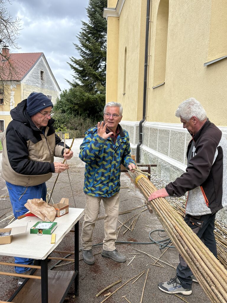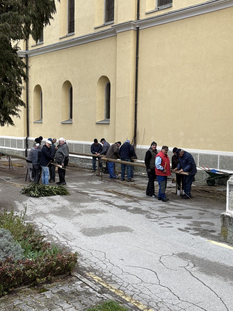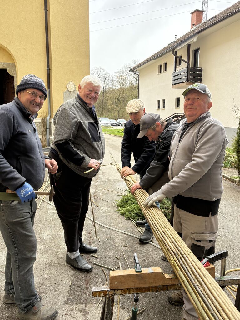 V četrtek, 26. 3. 2026, so se zbrali možje ob cerkvi svetega Jerneja Vojnik, kamor so pripeljali material za izdelavo treh velikih butar. Kljub mrzlemu in vetrovnemu vremenu so se vztrajno lotili dela, ki so ga skrbno načrtovali že nekaj časa. Pri izdelovanju vsak ve, kaj je njegovo delo, kateri material mora pripraviti in ga prinesti. Kronist Pavel Leskovar vsako leto redno zapisuje, kdo sodeluje in kako poteka izdelovanje butar. Pobudnik izdelovanja in postavitve je Mirko Krašovec. Letos so postavili butare že devetnajstič. Po njihovi postavitvi pred farno cerkvijo so se možakarji zbrali v Domu sv. Jerneja, kjer so se pogreli ob okusnem golažu, ki ga je skuhal član skupine Zdenko Vrenko.