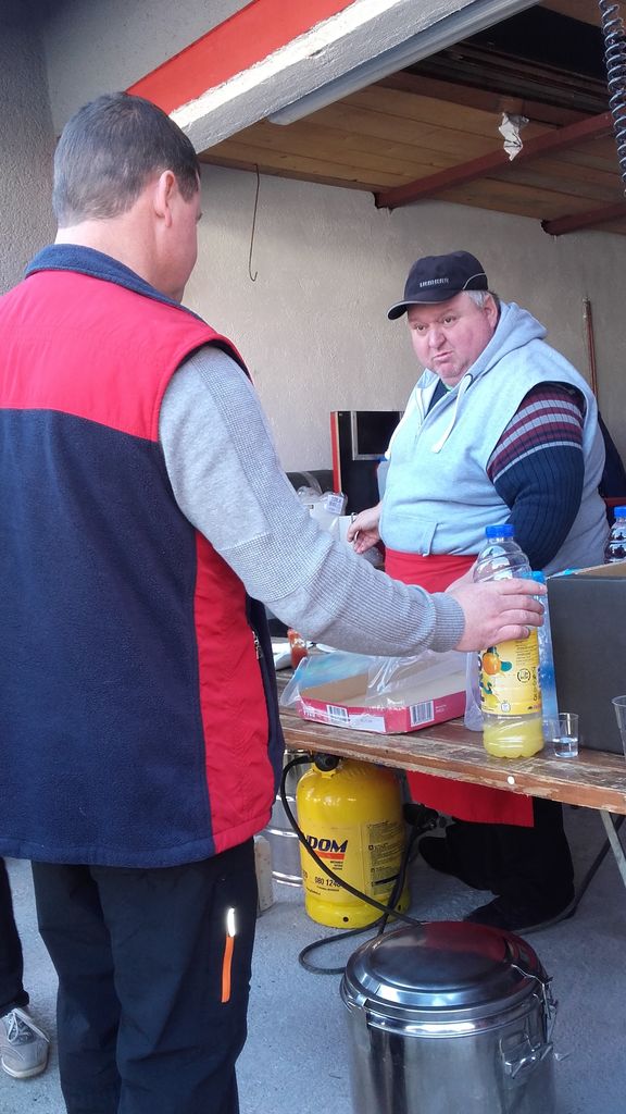 Ob zaključku akacije se nam je s prijaznimi besedami zahvalil Ivan, predsednik društva. Odpravili smo se h gasilnemu domu, kjer je zadišalo. Ob mizi se nam je še markacist Franci. Dobro pripravljena malica je zelo teknila. Hvala, Zdenko!