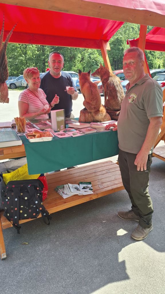Domačini – kmetje in gostje, ki so si prišli ogledati našo skupno prireditev so si ogledali stojnico lovskih trofej in postavljali vprašanja o pristopu k Lovski družini in drugih težavah, ki pestijo kmetije.