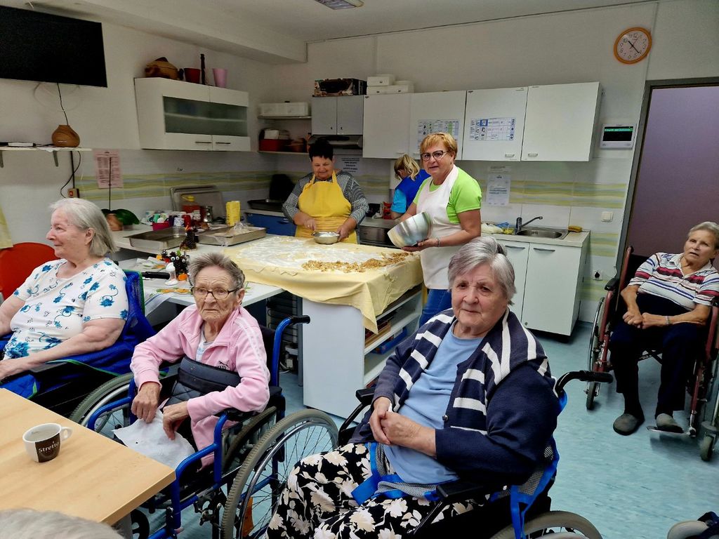 Naše poslanstvo je tudi druženje s težkimi invalidi. Tokrat smo člani MDDI Celje sodelovali z Društvom Dobra volja in obiskali Dom SeneCura v Vojniku. V štirih skupinah smo pripravljali domač "štrudl". Tudi zapeli smo, kakor se spodobi za dan, ko so gostje v hiši.