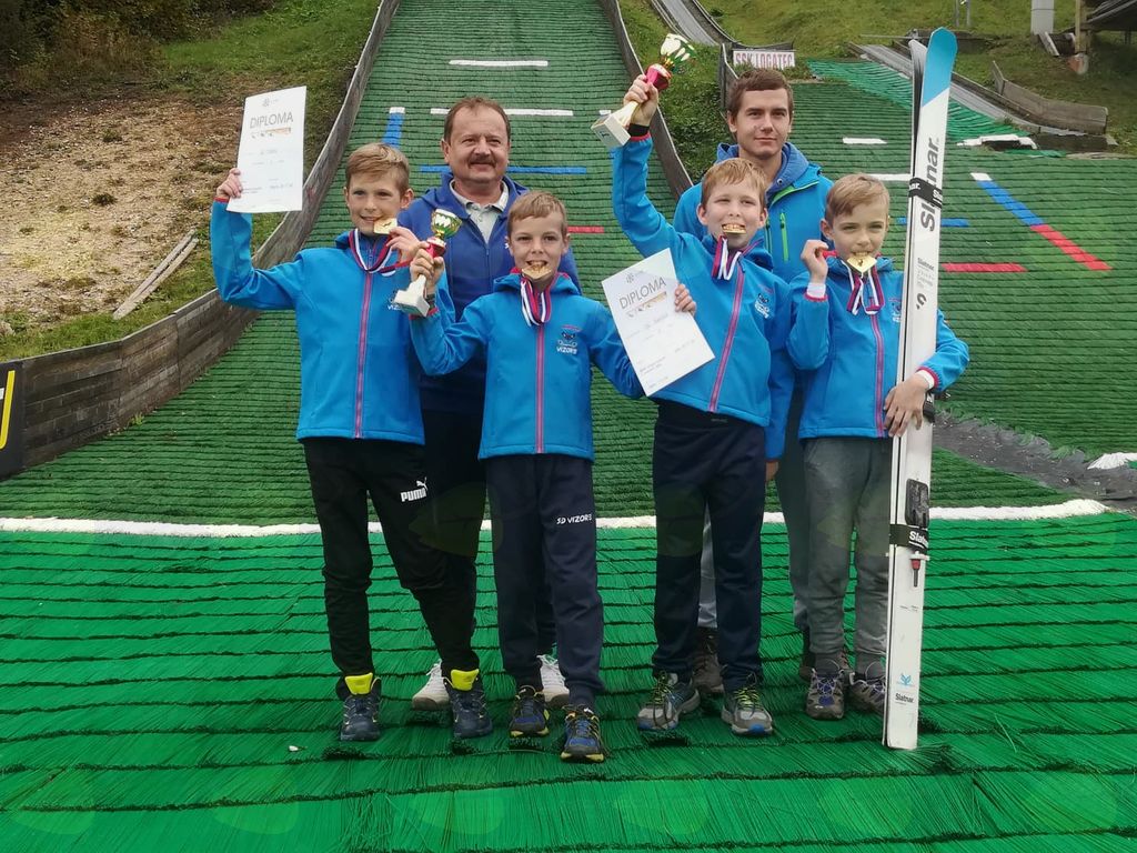 Da se v vizorski dolini, pod budnim mentorstvom trenerjev Stanislava in Davida Grma, rojevajo uspešne skakalne zgodbe, je zdaj že znano. Uspešno poletno sezono zaključujejo tudi fantje, ki skačejo v kategoriji dečkov do 11 let. Danes so se pomerili na državnem prvenstvu, ki je potekalo v Logatcu. Odličen uspeh so dosegli kot ekipa štirih fantov: Fin Šibli, Jaka Krajšek, Mai Zakelšek in Vojničan Jakob Mužar. Posegli so po 1. mestu in zlati medalji in tako postali državni prvaki v poletni sezoni 2018.