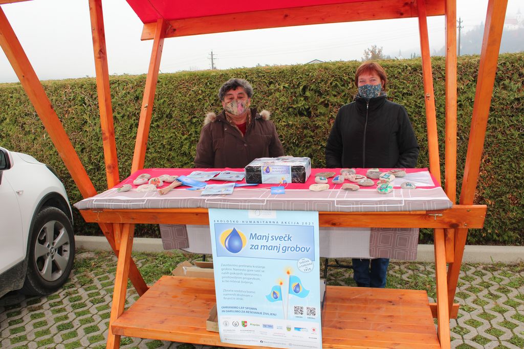 Prostovoljci društva Dobra volja zbirajo prostovoljne prispevke na stojnici pred pokopališčem v Vojniku 29., 30. in 31. oktobra 2021. Za darovan prispevek lahko vzamete zastavico sočutja ali poslikan kamenček. Akcija ima dvojni pomen: varuje naravo pred odpadnimi svečami in pomaga ljudem, ki pomoč res potrebujejo. Zbrana sredstva bomo letos namenili družinam v denarni stiski, ki ne morejo plačati dragih, težko dostopnih, a potrebnih terapij za obolele otroke.
