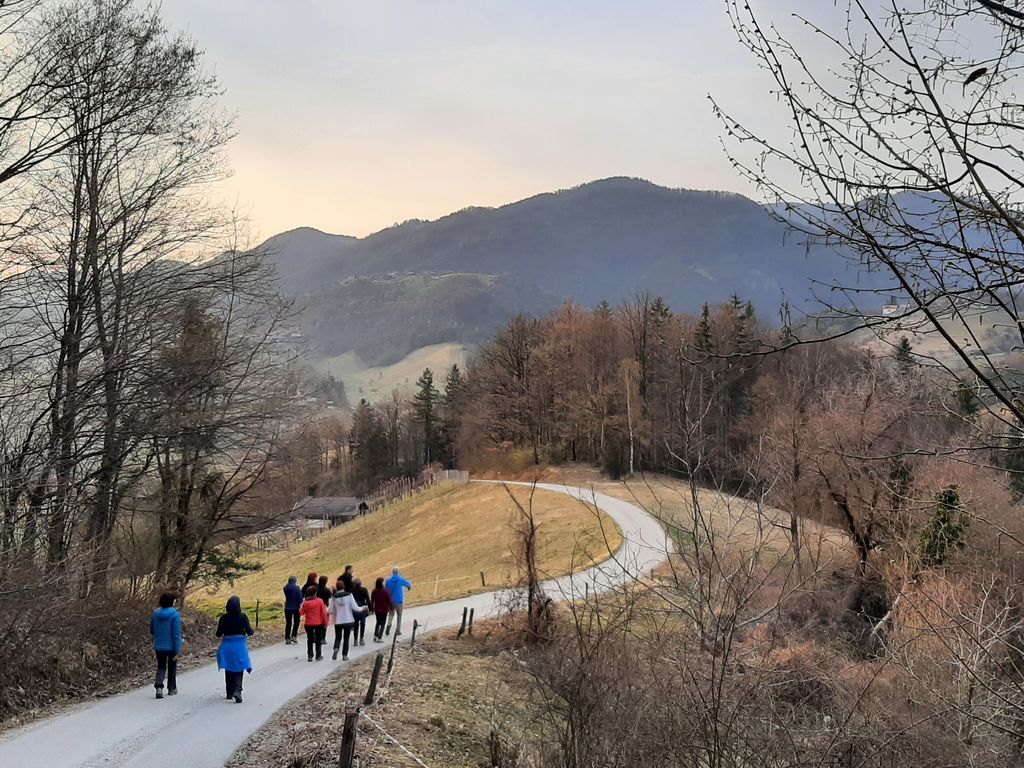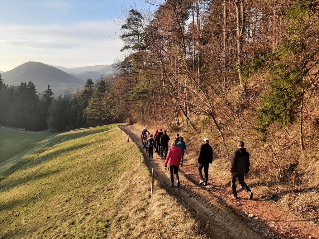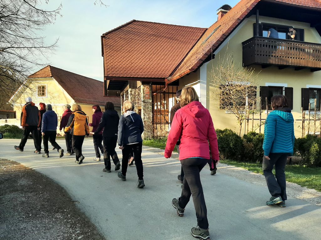 S središča vasi, kjer se naša druščina zbere, točno ob cerkvenem zvonu za osemnajsto uro odkorakamo v različne smeri. Kako se bo vijugala naša pot, je znano le našemu "pastirju", mi pa mu sledimo kot ovčice. Zvesto in z zaupanjem. Četudi dvakrat obkrožimo krožišče, tako za zabavo, smo mi za njim. Naš Marjan zna najti pot in radi mu sledimo.