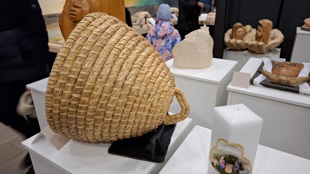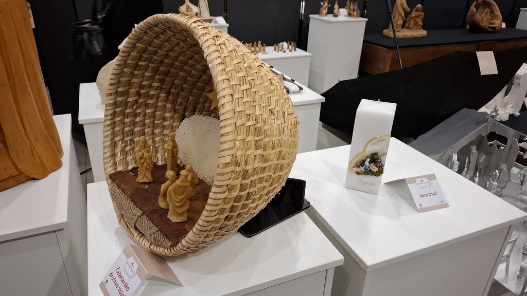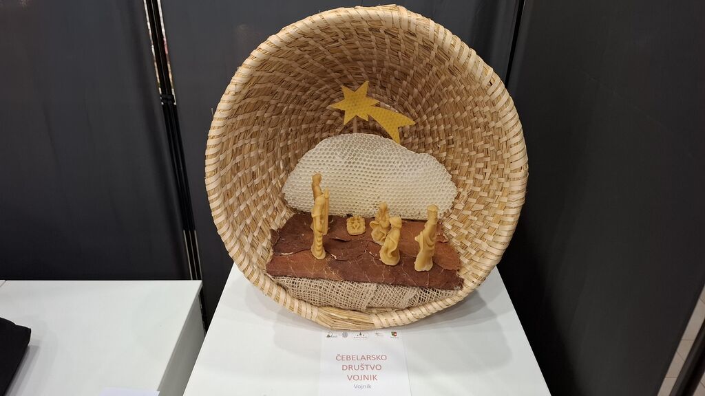 Čebelarsko društvo Vojnik je v slamnat košek postavilo sveto družino, pri čemer so figure ulite iz čebeljega voska. V ozadju jaslic je razstavljeno deviško satje, ki so ga čebele zgradile prav v slamnatem košku, kar razstavi daje posebno simbolno in čebelarsko vrednost.