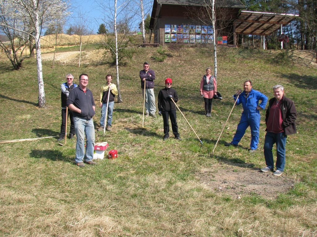 Očistili smo okolico čebelnjaka, pograbili odpadlo listje z zelenice in uredili nedavno izkopan jarek vodovodnega priključka.