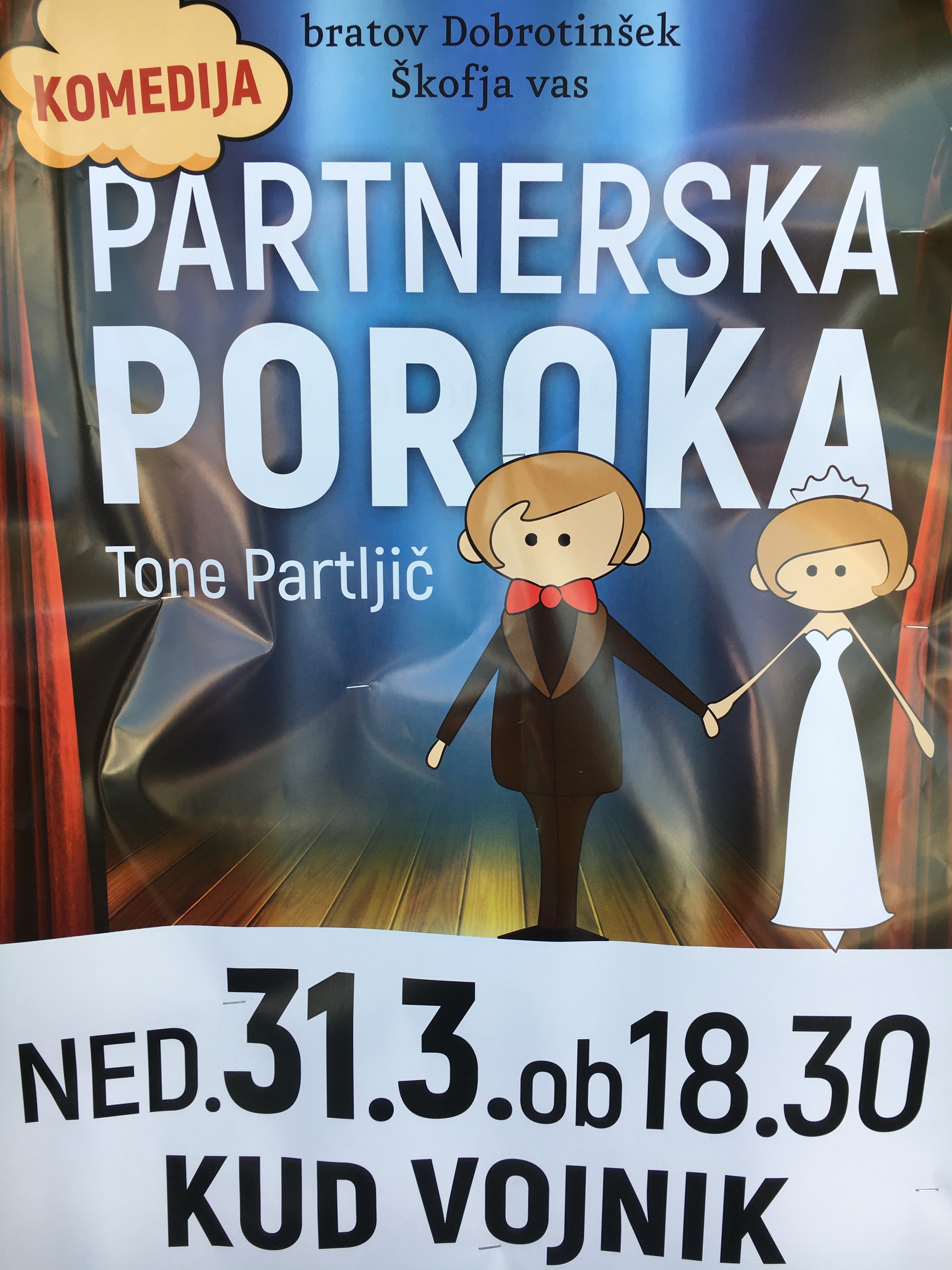 - Partnerska poroka: 31. marec 2019 ob 18.30 v izvedbi KUD Bratov Dobrotinškov Škofja vas v Kulturnem domu Vojnik.