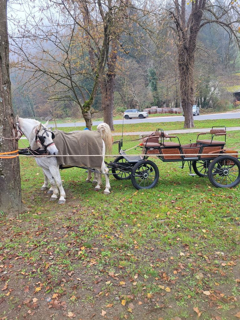 Pod starimi kostanji je kar vrvelo, konji različnih barv in velikosti, različnih pasem, lepo skrtačenih, trije pari vpreženih v lepo ohranjene kočije, oz. koleslje, je bilo razporejenih po celotnem graščinskem parku.