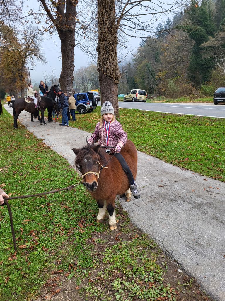Ljubezen do konj pa se seveda začne že v družini, že zelo zgodaj, kar so dokazali naši mali konjeniki, ki so bili med odraslimi. Punčka, stara 9 in fantek 6 let sta pokazala, kako dobro že obvladata jezdenje, čeprav so jima morali pomagati na konjski hrbet. Najbolj simpatična pa je bila mala Mirjam, ki tudi ni stara več kot 6 let, ki je v očkovem spremstvu suvreno jezdila svojega ponija.