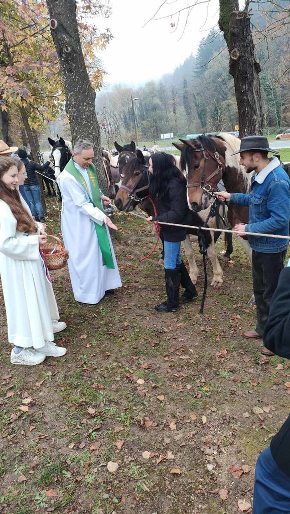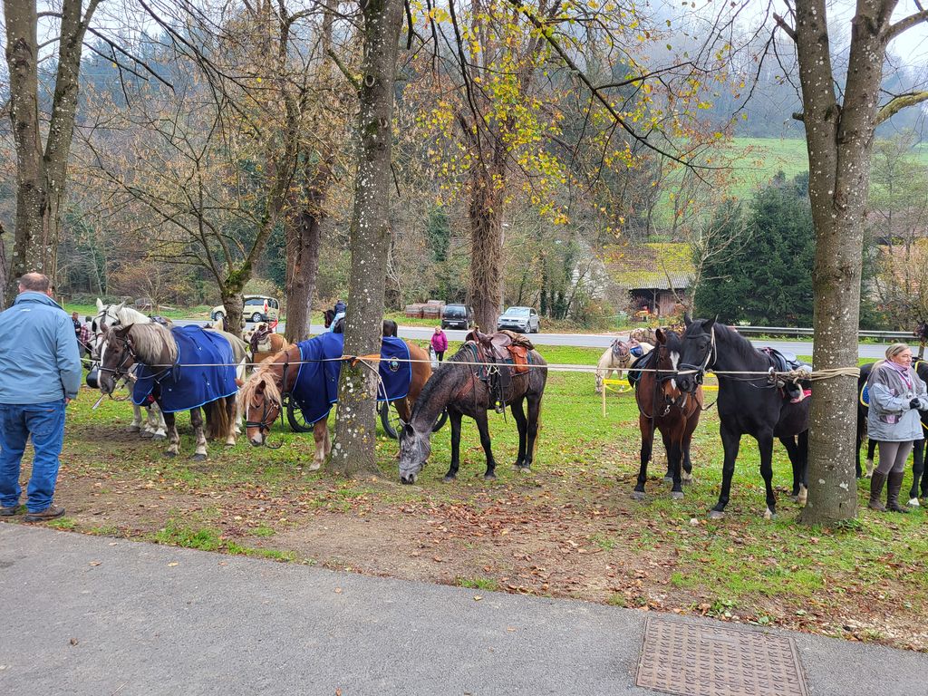 Nekateri konjeniki so že zelo zgodaj krenili na pot, da so ujeli blagoslov ob 11. uri. S kočijami so se pripeljali iz Konjeniškega društva Celje, Kartuzijanska konjenica – enota Špitalič ter Rudi Iskrač iz naše soseščine, Kamne Gore. Sicer pa so k blagoslovu s svojimi konji prijezdili tudi iz Konjeniškega društva Štore, Šaleške konjenice, Jurjeve konjenice, 123. konjeniškega polka ter seveda, domači konjeniki, med njimi g. Božo Delčnjak, ki nam vedno pomaga pri obveščanju konjenikov.