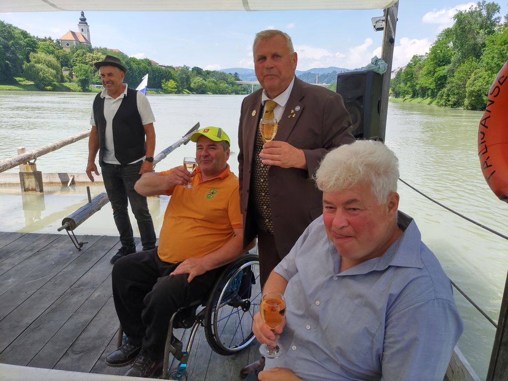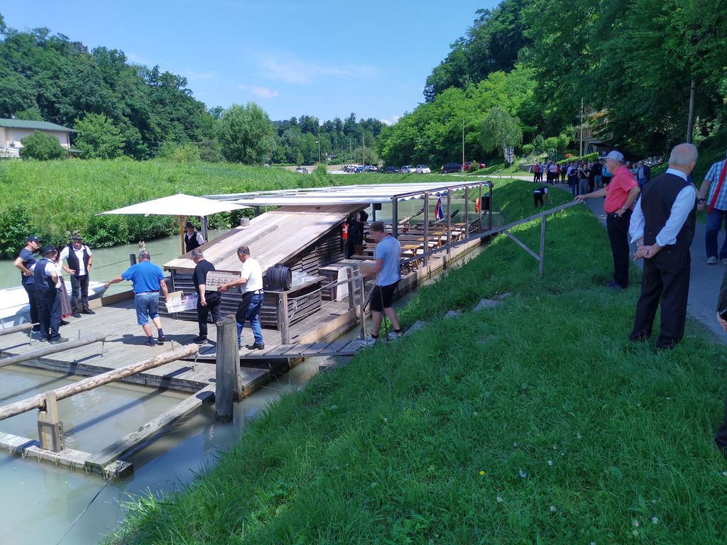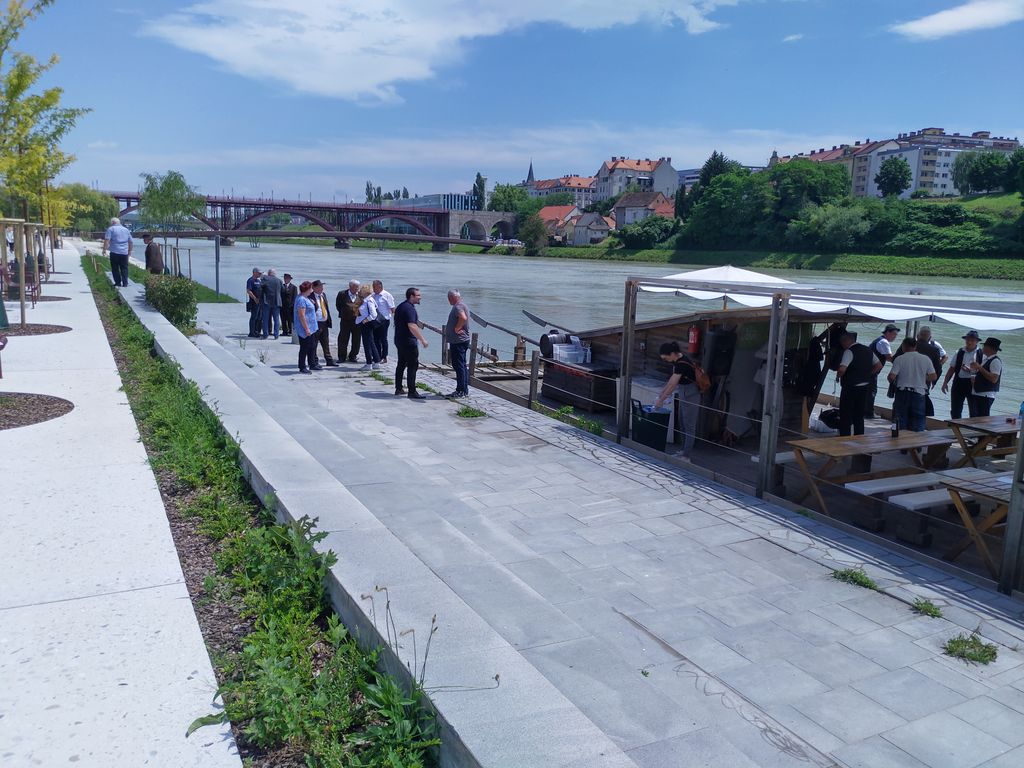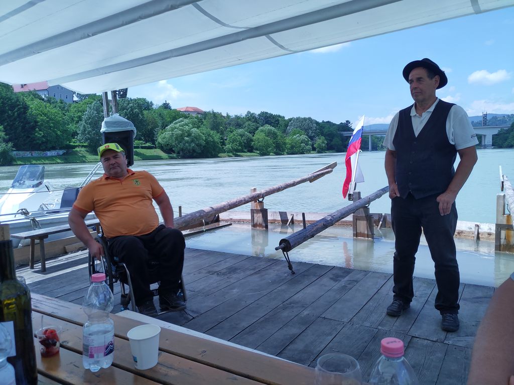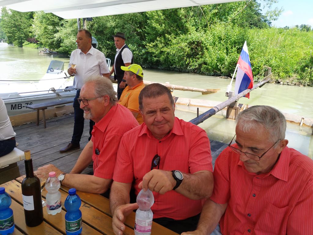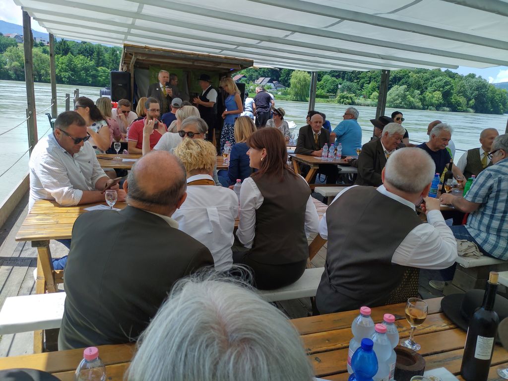 Po prihodu splava se je začelo natovarjanje iz logističnega vozila in nato smo vstopili potniki s glasbenikom. Splav je zaplul po Dravi navzdol in dogajanje se je pričelo s pokušinami medenih kulinaričnih dobrot. V spremljavi glasbe in petju naših Arclinskih fantov smo veselo uživali s pogledi na lepa obrežja in mostove na Dravi. Enkratno doživetje, lepo vreme in že smo pristali na obrežju Lenta.