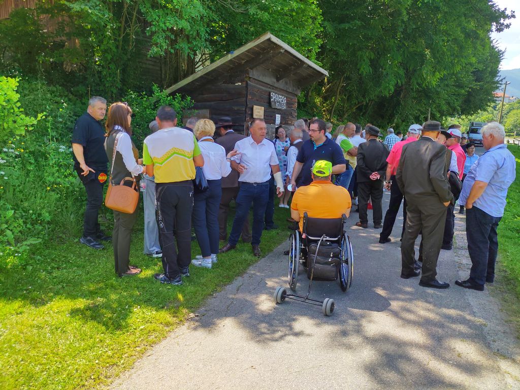 Po končanem uradnem delu nas je gospod Selinšek popeljal na avtobus iz z njim v pristan vodnega splava na Dravi. V Splavarski kolibi nas je čakalo medeno presenečenje. Medena pijača, medeni izkopanec in mesni kanapejčki s vinom in virtuoz na harmoniki.