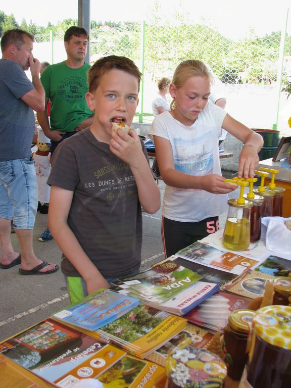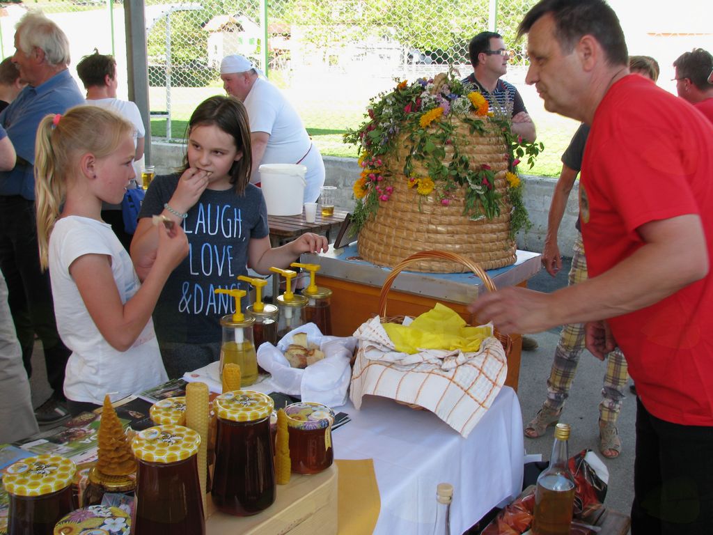 V soboto, 10. junija 2017, smo člani ČD Vojnik na igrišču pod šotorom v sklopu krajevnega praznika KS imeli »dan odprtih vrat«, kar pomeni, da smo nudili obiskovalcem pokušino čebelarskih izdelkov in prikazali pečenje palačink z medom in medenih omlet. Na ogled smo postavili razgledni panj s čebelicami, nekaj čebelarske opreme iz preteklosti in reklamni material – zloženke na temo čebele. Naša stojnica je bila najbolj zanimiva za otroke, ki so jih privlačile sveže pečene palačinke in omleta z medom. Zanimiv pa je bil tudi razgledni panj s čebelicami, kjer so starši odgovarjali na otrokovo zvedavost. Barbara in Primož sta bila ves čas zasedena s pečenjem. Energija je bila odlična in čas je hitro minil.