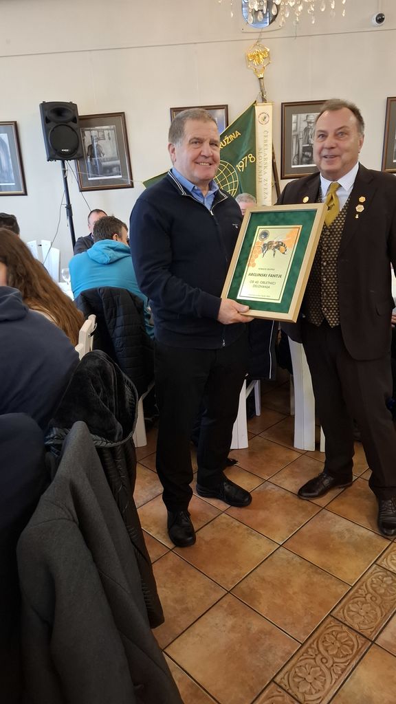 Posebno priznanje ČDV gre v roke Arclinskim fantom v zahvalo za pevske nastope v čebelarskem društvu in za 40-letni jubilej prepevanja.