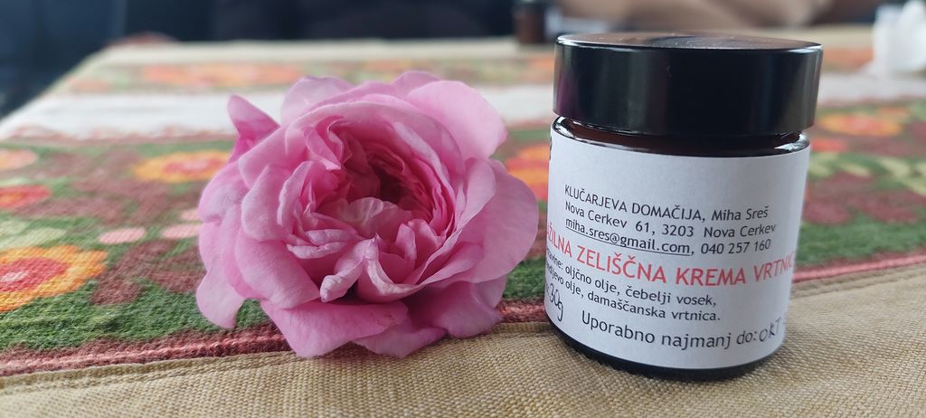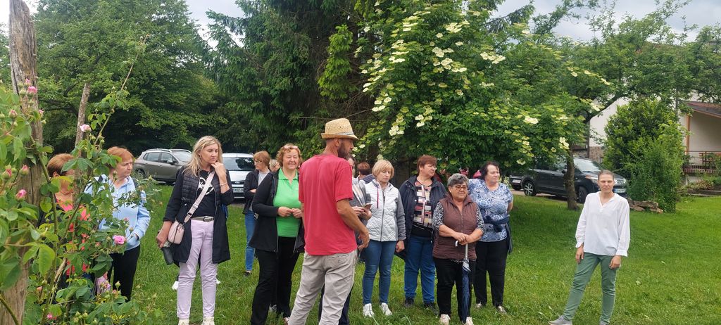 V četrtek 22.5.2025, smo se članice društva Dobra volja zbrale ob 17.00 uri na Klučarjevi zeliščni kmetiji v Novi Cerkvi, ki jo vodi Miha Sreš. Najprej smo si ogledale zelenjavo in zelišča, ki jih gojijo na kmetiji in veliko izvedele o njihovi uporabnosti. Na kmetiji so popolnoma samooskrbni in si vso zelenjavo, zelišča in sadje pridelajo sami. Gojijo tudi damaščansko vrtnico, ki jo uporabljajo za izdelavo naravne kozmetike. Nato nam je Miha pokazal kako se naredi krema iz vrtnic in vsaka udeleženka je dobila eno kremico za domov.