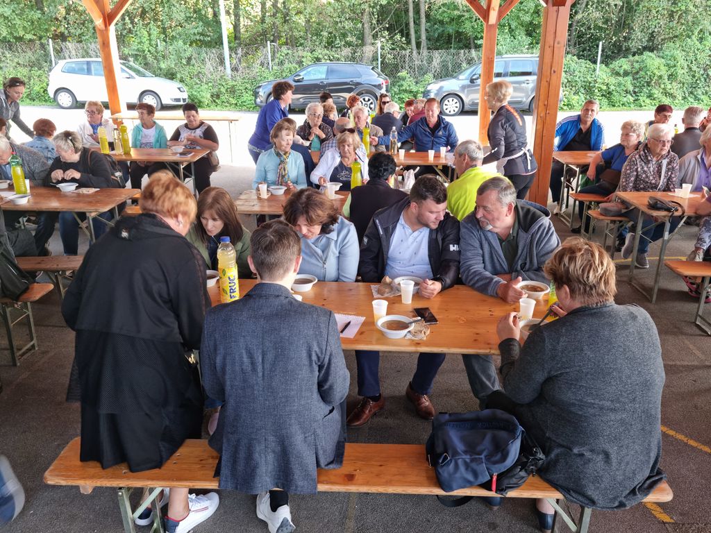 V soboto, 7. oktobra 2023, je bil prelep sobotni dan in mi smo se zbrali na Lopati. Organizacijski odbor je že zjutraj začel priprave tako kulinaričnega kot športnega dela. Dekleta so pecivo, ki smo ga spekli doma in v okviru naših delavnic, zložila na pladnje. Zdenko Vrenko in Bojan Užmah sta pripeljala vse potrebno za piknik. Romana Videnšek je prinesla sveže pečen kruhek iz pekarne v Škofji vasi, ki so nam ga z veseljem podarili. Brane Ropič se je postavil h kotlu in skuhal gobovo juho. Udeleženci so res uživali in se borili za vsako športno točko.
