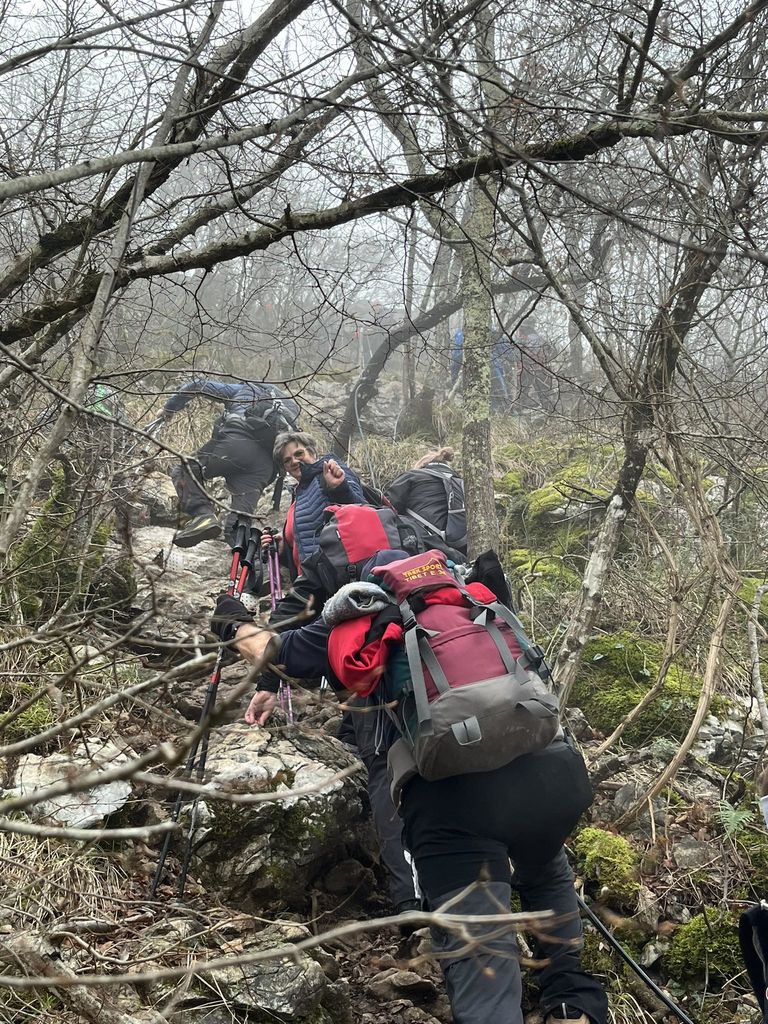Le v delu, kjer se pot dviga iz soteske, so naša pljuča morala zajeti dovolj zraka in tudi naša telesa so se dobro ogrela.