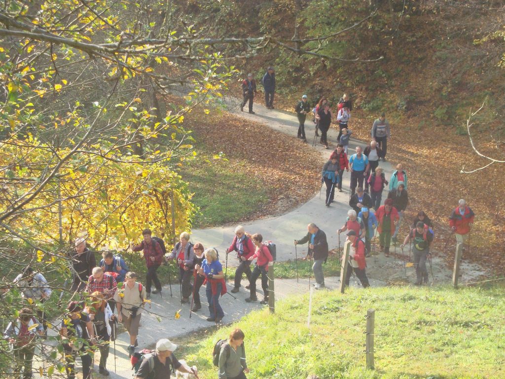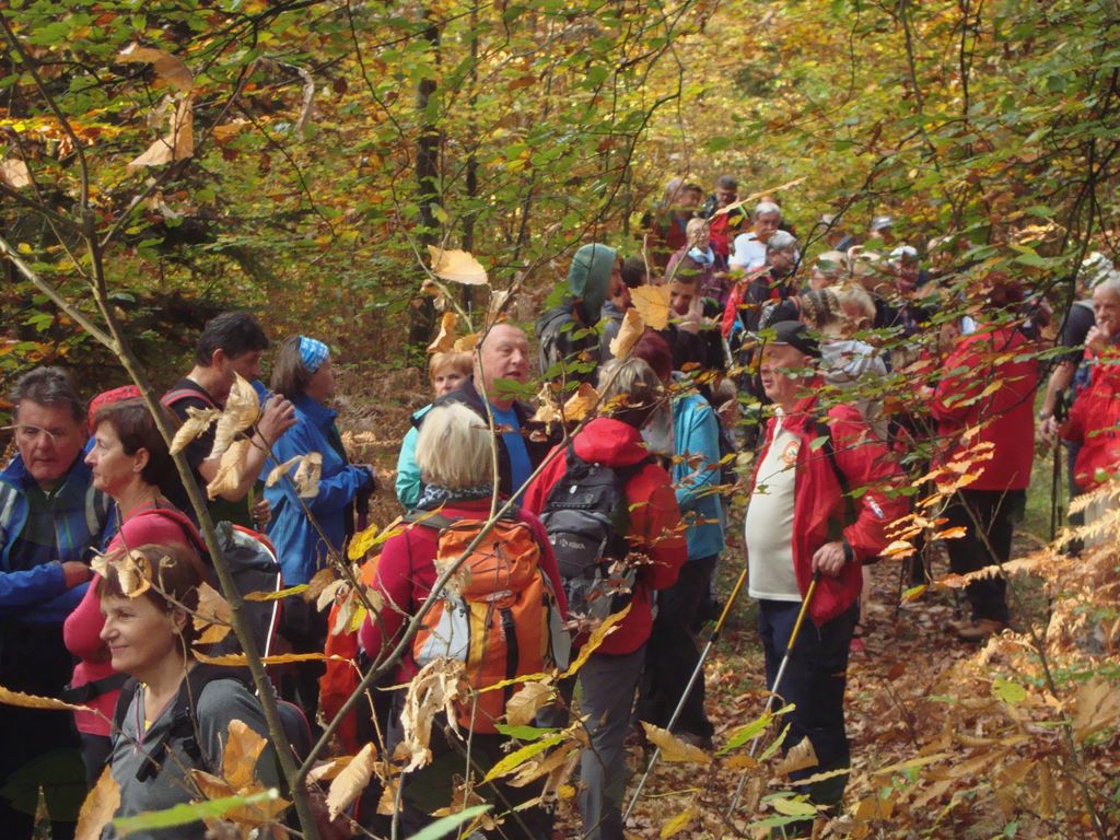 Blagodejno šelestenje listja pod nogami je poti dodalo svojo zgodbo … In Franc, naš vodnik, ki je bil sprva na čelu kolone (letos je bila dolga) in v sredini ter še na koncu, je dodal poti pridih sprehajalne poti, ki razkriva življenje ljudi v sožitju z naravo.