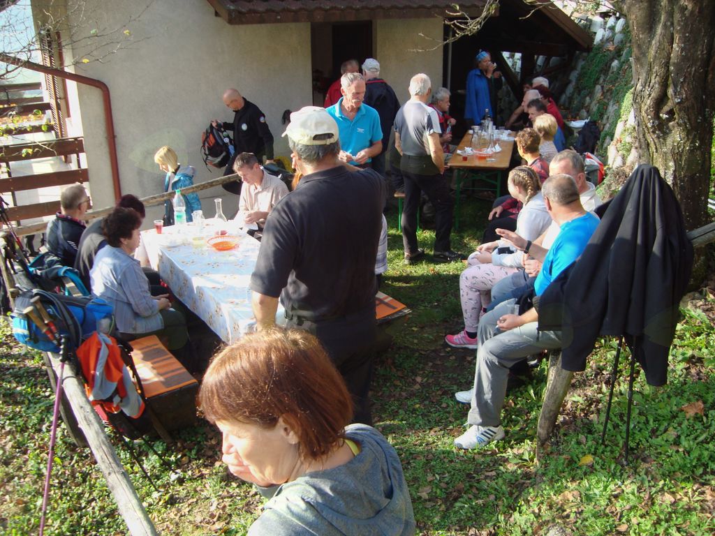 A pot nas je vabila naprej, mimo »gor'c« in kleti, urejenih domačij, lepih travnikov, skozi gozd … do Koče na Tomažu. Zdenko nas je pogostil z zelenjavno juho, Olga nam je pripravila slastne palačinke. Urno ji je ob tem pomagal Vili. Vesela družba se je zavrtela ob glasbi Francijev. In kostanj, ki ga je pripravil Peter, je bil odličen!