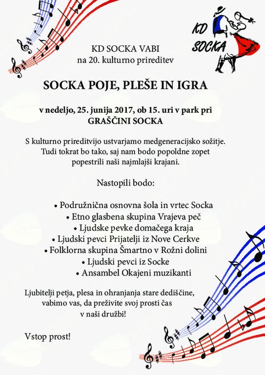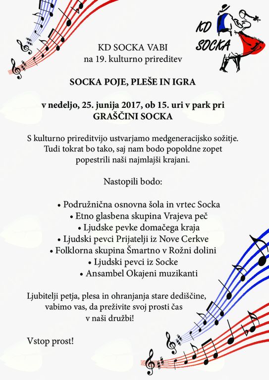 PRIREDITEV JE BILA PRESTAVLJENA ZARADI DEŽJA! VABLJENI V NEDELJO, 2.7. 2017 V SOCKO!