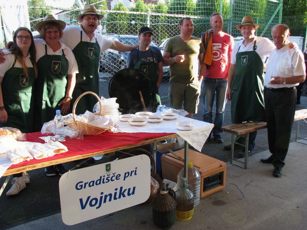 Gradiški kuhar Martin Jošt je dobil priložnost, da na prazniku KS Vojnik z ekipo pomočnikov, vojniških Gradiščanov, skuha »golaž« za obiskovalce prireditve, namenjene druženju in zabavi, ki jo vsako leto organizira krajevna skupnost za krajane brezplačno. Predsednica sveta, gospa Lidija Eler Jazbinšek, nas je povabila in tako smo se vojniški Gradiščani predstavili širšemu krogu prebivalcev občine Vojnik. Drugo leto 2. junija pri nas na Gradišču poteka 18. srečanje Gradiščanov Slovenije. Za osvežitev spomina naj povem, da smo Gradiščani 2009. leta že imeli pri nas prvo tovrstno srečanje in ga zdaj pripravljamo drugič. Od 27 vasi z imenom Gradišče v Sloveniji vsako leto pripravi eno Gradišče srečanje in nanj povabi prebivalce vseh drugih Gradišča. Od leta 2001 sodeluje in pripravlja srečanja samo trinajst Gradišč. Druga pa zaradi male naseljenosti ne zmorejo organizacije oz. ne najdejo oseb, ki bi prevzele prostovoljno delo povezovanja ljudi. To pa ni samo druženje in zabava na začrtan dan, ampak vas s tem dogodkom naredi infrastrukturni premik naprej k boljšemu položaju prebivalcev. Gradiščani tako velike organizacije ne zmoremo sami, brez podpore krajevne skupnosti in občine, zato je dobro in strpno sodelovanje z lokalno skupnostjo odločilnega pomena za vse tri partnerje: občino, krajevno skupnost in Gradiščane.