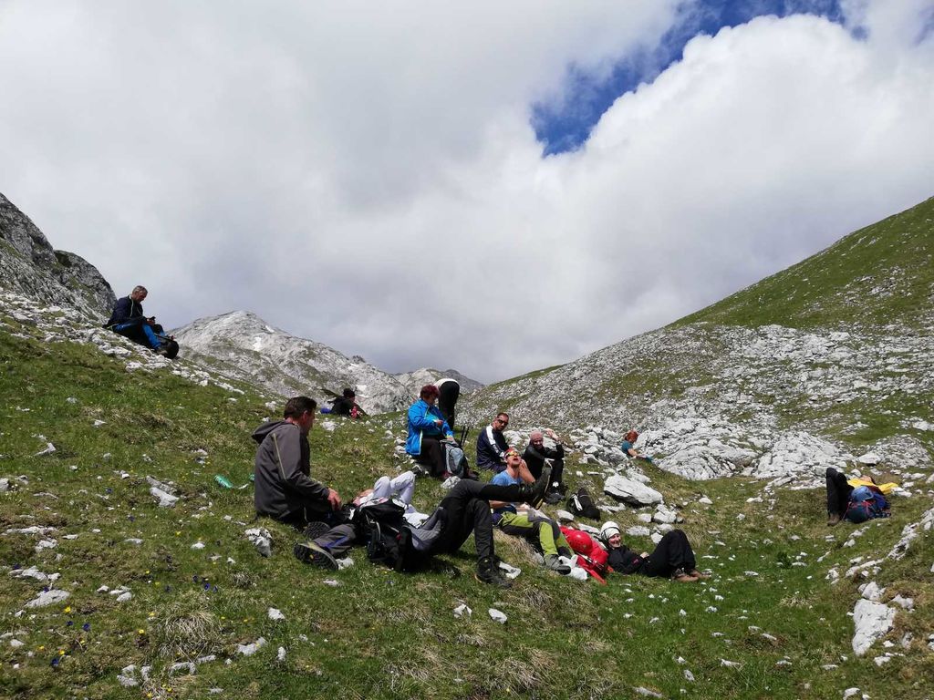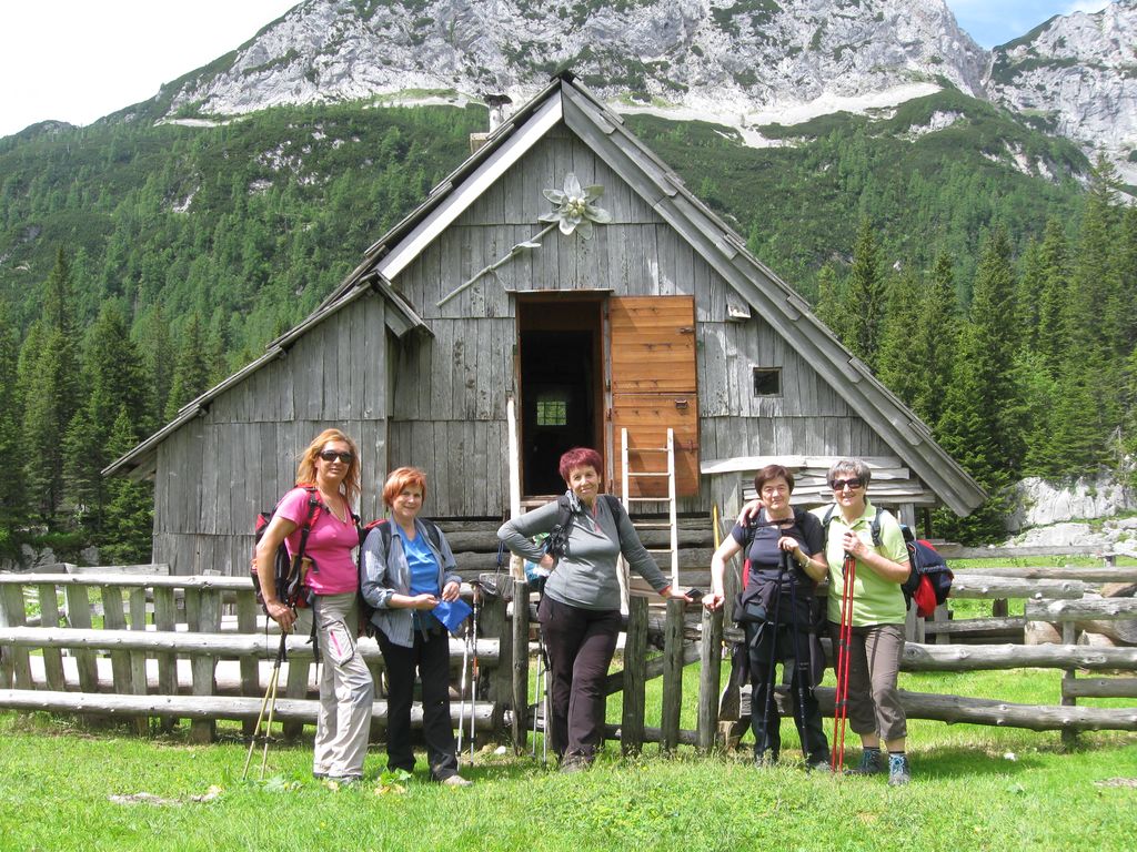 Zaradi vremena smo pohiteli proti Planini pri Jezeru. Nekaj na žlico je malica, ki se prileže planincu po turi. V želji, da tudi prva skupina varno opravi vzpon in se zadovoljna vrne, smo pogledovali proti goram.