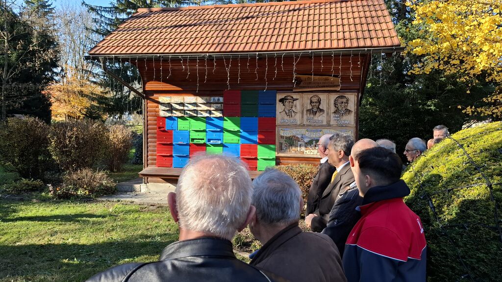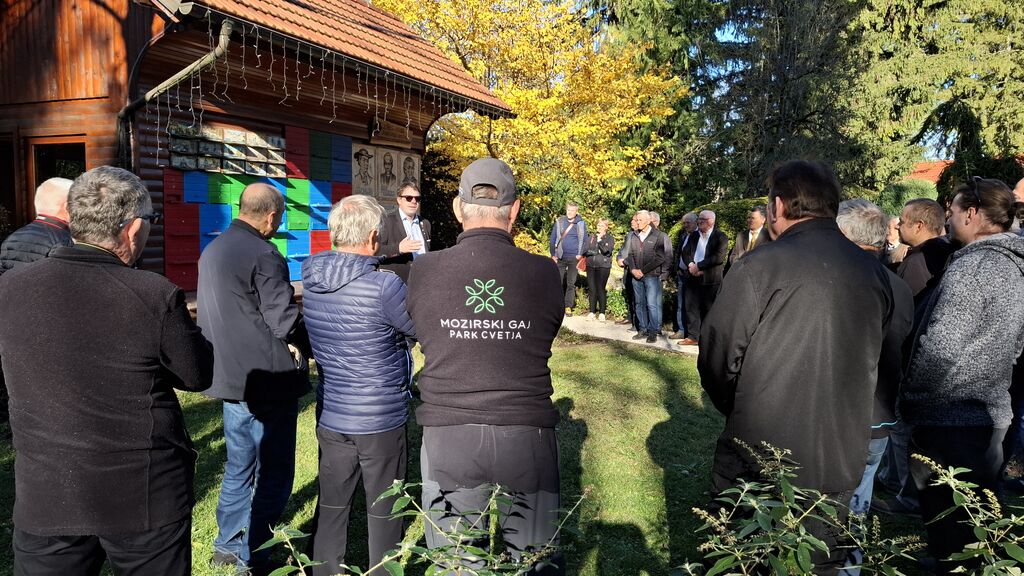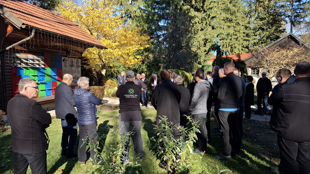 V četrtek, 6. novembra 2025, smo se ob 13. uri zbrali na parkirišču pred Mozirskim gajem, kjer smo si najprej ogledali obnovljen čebelnjak, poškodovan v nedavni povodnji.