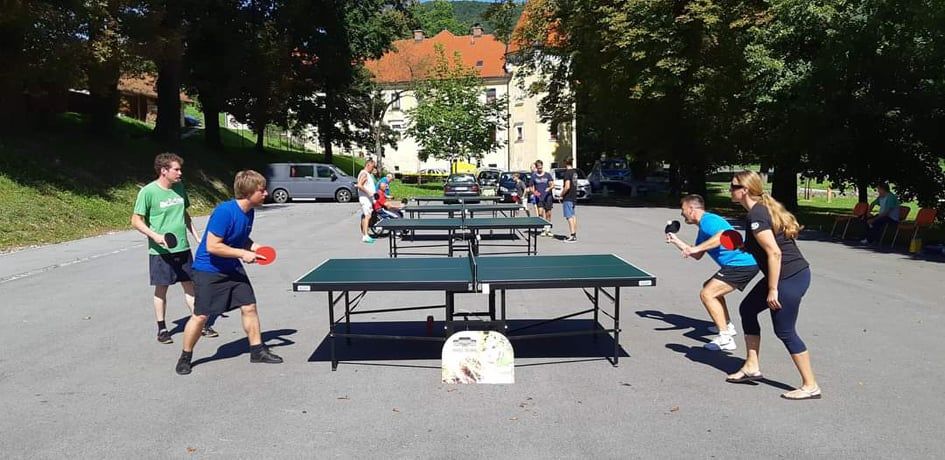 Športno dogajanje se v poletnem času preseli tudi na bazen Frankolovo, kjer redno igrajo odbojko na mivki in lani tudi namizni tenis. Ob koncu treningov pa se seveda prileže osvežitev v bazenu ali pogovor s prijatelji ob hladni pijači.