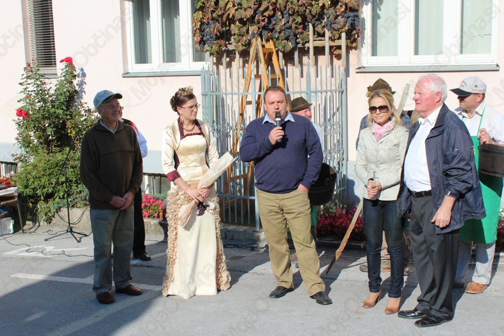 Prvi grozd je odtrgala vinska kraljica Slovenije Martina Baškovič, ki prihaja iz dežele cvička. Zanimivo je, da si je za kraljičino vino izbrala sauvignon izbor. Z lepim nastopom je očarala obiskovalce. Upamo, da bo Vojničane ohranila v lepem spominu.