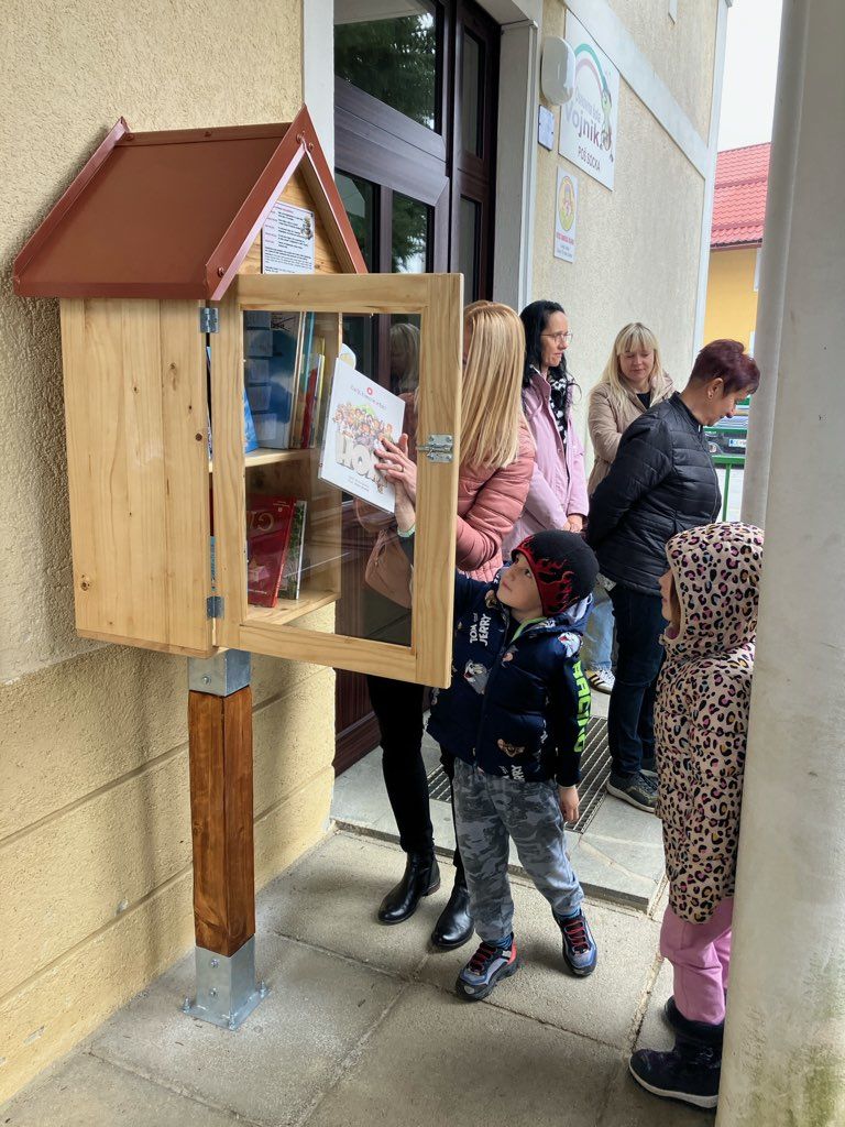 Leseni hiški za knjige je izdelal dijak lesne šole Florjan Selčan, gospod Dobovičnik jih je pa zasteklil. Eno hiško smo postavili na vasi v Novi Cerkvi in eno pri POŠ Socka.