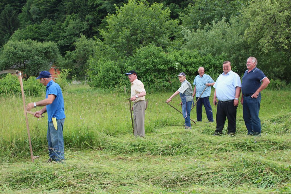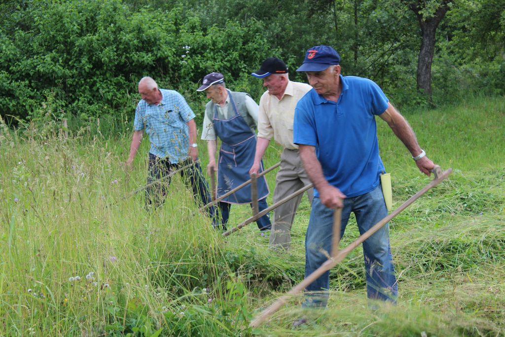 Veterani PGD Nova Cerkev se pripravljajo na državno gasilsko tekmovanje veteranov, ki bo v Vojniku. Za pridobivanje vzdržljivosti in moči izkoristijo tudi košnjo. Na travniku pri Jožetu Štokovniku so se zbrali v ponedeljek in vzorno lepo pokosili travnik. Delo sta »nadzorovala« Slavko Jezernik in Drago Založnik.