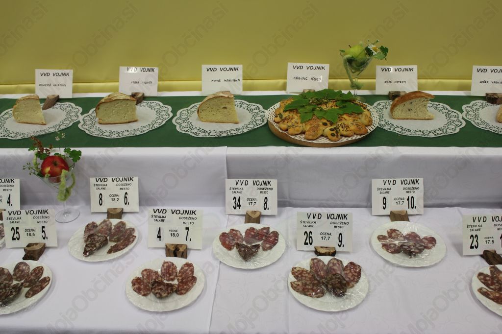 Sedemintrideset izdelovalcev salam se je pomerilo na V. salamiadi. Vsi izdelki so bili odlične kakovosti, prvak – salamar leta pa je letos Franc Bezovšek. Med vinarje, ki jim je bil namenjen vrhunec večera, so razdelili 111 diplom – medalj, 66 graviranih kozarcev za vina z oceno nad 18,10, 11 »brentačev« za prvake sort, plaketo za najboljša vina normalne trgatve je letos osvojil Miran Kovač, plaketo za vino posebnih trgatev pa Mirko Krašovec. Plaketo za vinarja leta je tretjič zapored osvojil Miran Kovač. Vinogradniki so imeli res kaj pokazati. Leta 2004 je bila povprečna ocena 17,38 in 60 izločenih vzorcev, letos pa povprečna ocena 18,10 in samo 5 izločenih vzorcev. Vztrajnost je rodila presenetljiv uspeh. Za lepo urejen ljubiteljski vinograd je bil nagrajen Peter Martič, za brajdo pa Herman Felicijan. Kletarja VOJNIČANA Miran Kovač in Peter Martič pa sta prevzela zlato priznanje z oceno 18,27 za belega ter srebrno z oceno 17,60 za rdečega VOJNIČANA.