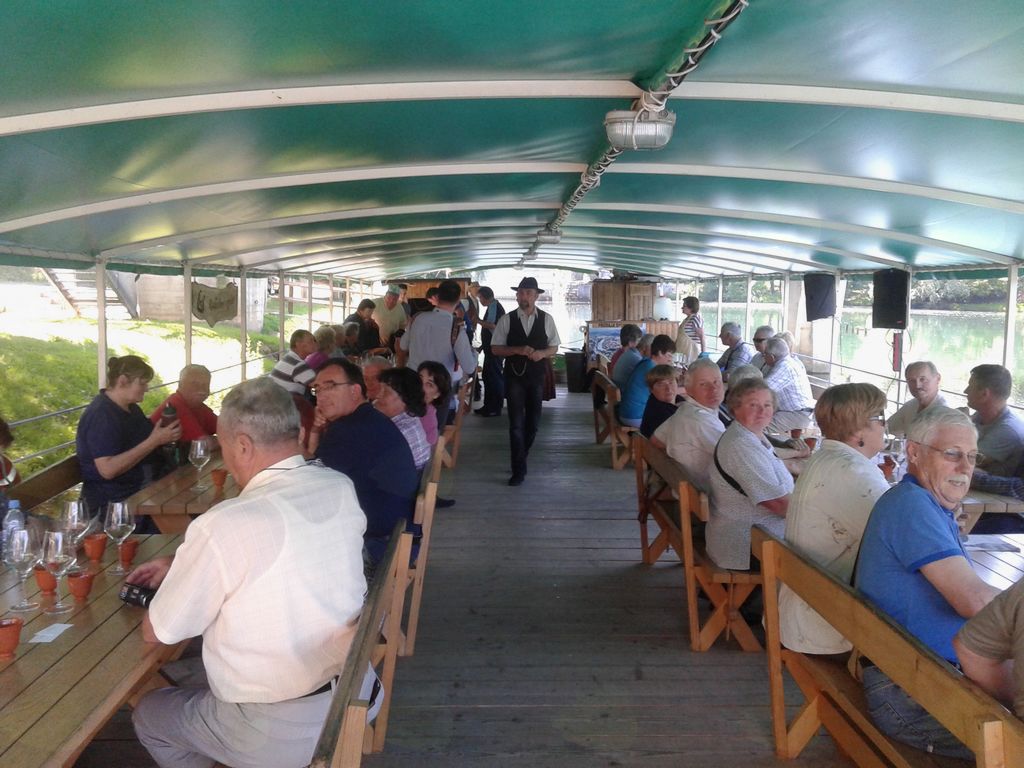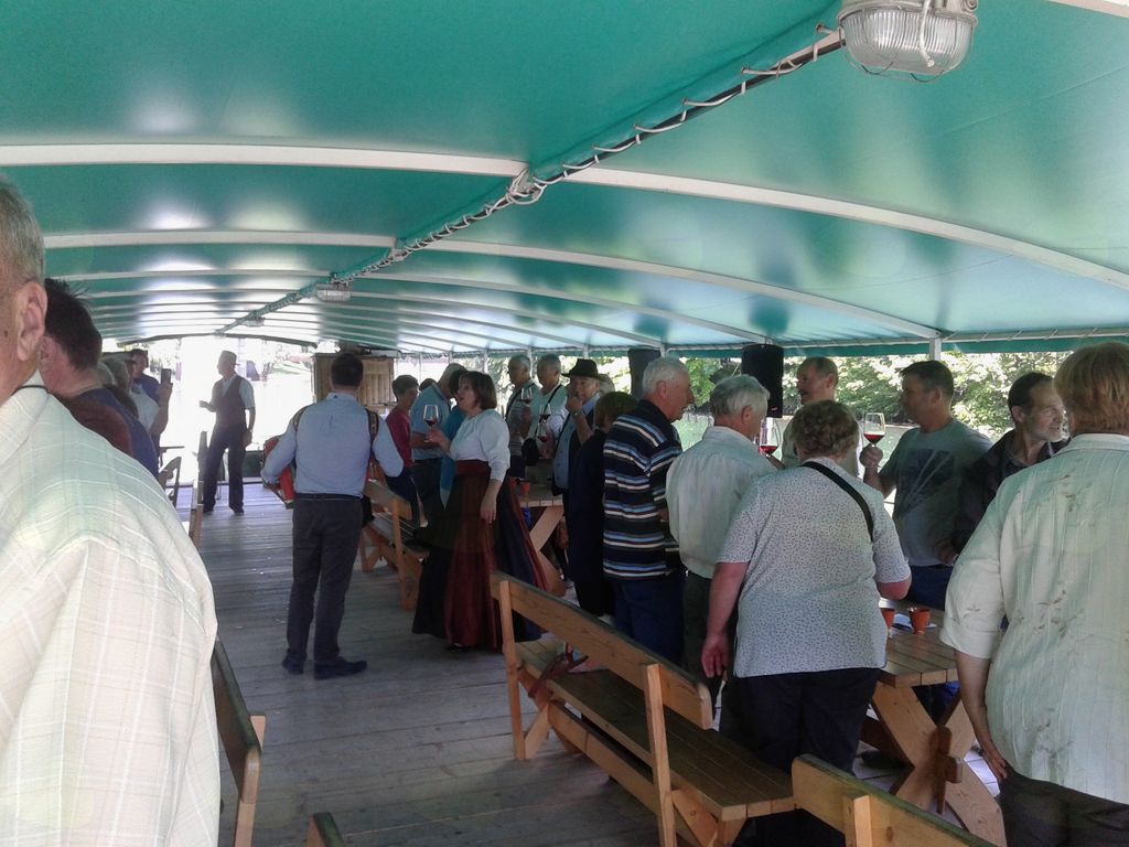 V soboto, 27. maja 2017, smo se vojniški vinogradniki odpravili na že XIV. tradicionalni strokovni izlet na Dolenjsko. Najprej nas je pot pripeljala v Novo mesto, kjer smo si ogledali mestno jedro in se sprehodili še do kapiteljske cerkve. Ogledali smo si nenavadno zasnovo cerkve in se spustili tudi do grobnice. Po obisku cerkve je sledil spust do reke Krke, kjer nas je že čakal Rudolfov splav. Gostitelji so pripravili prijetno vožnjo po okljuku reke Krke, na samem splavu je potekala tudi degustacija vin. Mladi vinar g. Colnar nadaljuje družinsko tradicijo, za degustacijo je izbral tri vina, obvezni cviček, rose in modro frankinjo. Družina Colnar je stara rodbina, saj zapisi segajo v leto 1400.