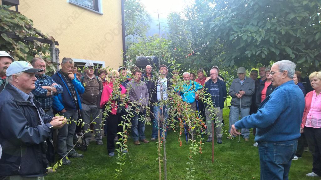 Na zbirališču pred cerkvijo sv. Jerneja nas je pozdravil župnik Anton Perger, vinogradnikom pa sta se pridružila tudi gosta, župan Branko Petre in predsednica krajevne skupnosti Vojnik Lidija Eler Jazbinšek. V Vojniku smo obiskali vinogradnika Jožeta Šabjana, ki je bil med ustanovitelji društva. Že na zelenici pred vinogradom smo pričeli z učno uro vinogradništva in sadjarstva. Ogledali smo si dozorele goji jagode in poslušali nasvete o rezi, o trti in redki sorti gerlinčan ter o sorti kerner.