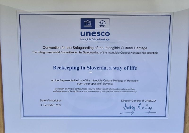 22. aprila 2023 je ministrica za kulturo dr. Asta Vrečko v Radovljici predsedniku ČZS Boštjanu Noču izročila listino o vpisu čebelarstva na Unescov reprezentativni seznam nesnovne kulturne dediščine človeštva.