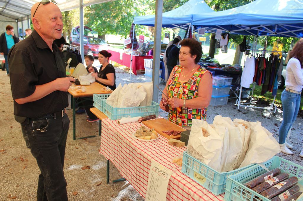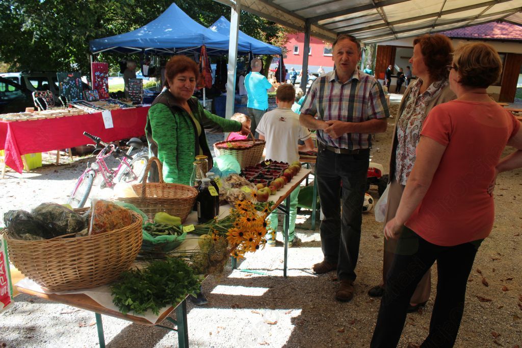 Na stojnicah so tokrat ponujali rabljene izdelke, tako imenovano staro kramo. Obiskovalci so lahko kupovali različne izdelke, predvsem oblačila po en evro, pa igrače od enega do deset evrov, tiskalnike po dva evra, potem nakit in piškote po simboličnih cenah, manjkalo pa ni seveda stojnic z domačimi pridelki naših rednih branjevk. Pod mentorstvom gospoda Jožeta Žlausa in gospe Vike so lahko risali risbe na papir ali voščilnice in na koncu je bilo kar veliko lepih izdelkov. Čez celotno prireditev je obiskovalce zabaval ansambel Klateži, dišalo je po čevapčičih in tudi za žejne je bilo poskrbljeno.