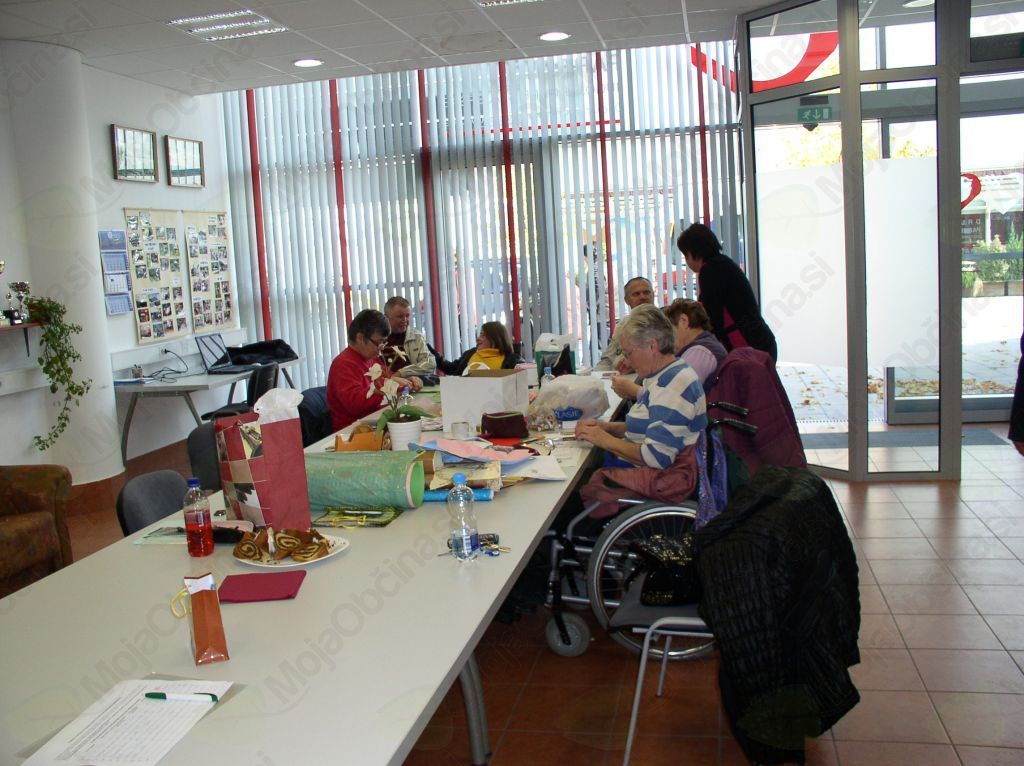 Po uvodnem pozdravu je pogovor med nami stekel, kot da smo že stari znanci. Članice DPJVŠ so izdelovale voščilnice, ena članica pa je vezla namizni prt. Ženske smo si svoje izdelke pokazale in pogovor je stekel o življenjskih izkušnjah in o življenju nasploh, ki nas je dodobra preizkusilo. Lahko bi rekla, da je bila to učna delavnica, saj so nam kolegice pokazale, kako izdelujejo in oblikujejo voščilnice, hkrati so nam predstavile še druga ročna dela. Potarnale so, da jim včasih kar zmanjka časa za izdelovanje, saj se imajo vedno veliko kaj za pogovorit in veliko smo se pogovarjale tudi me.